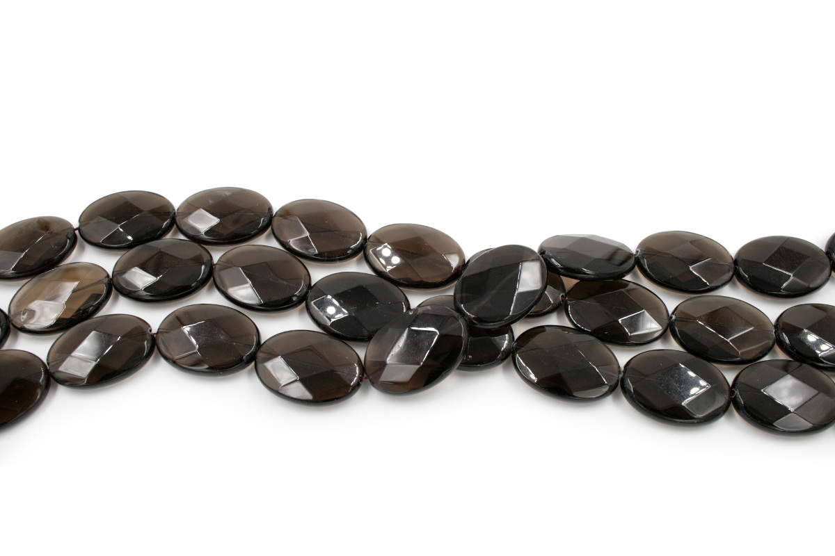 Smoky Quartz strands faceted flat oval shape size 30x22mm