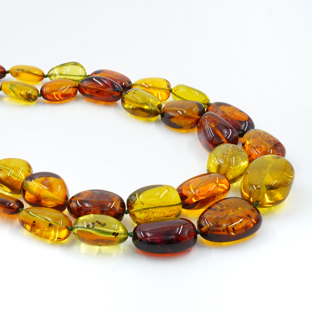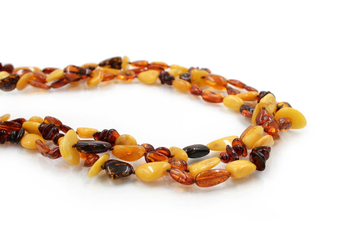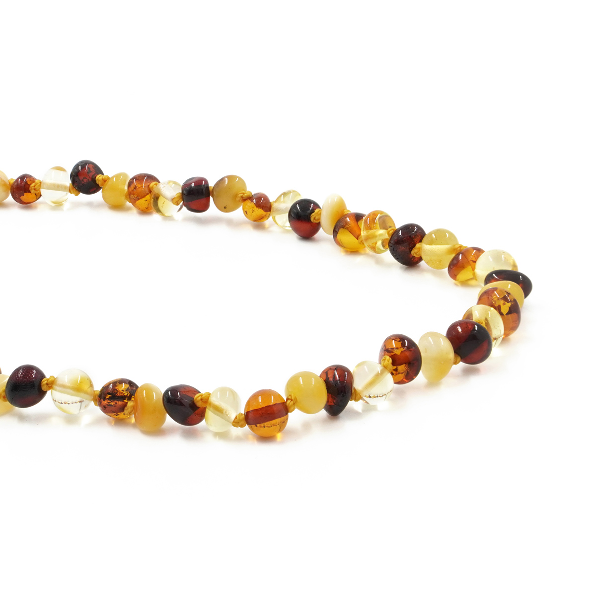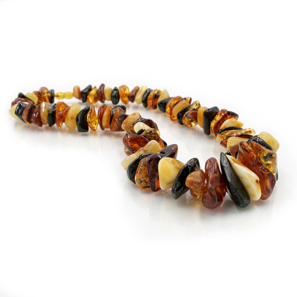 Multicolor Baltic Amber Necklace flat tumbles shape