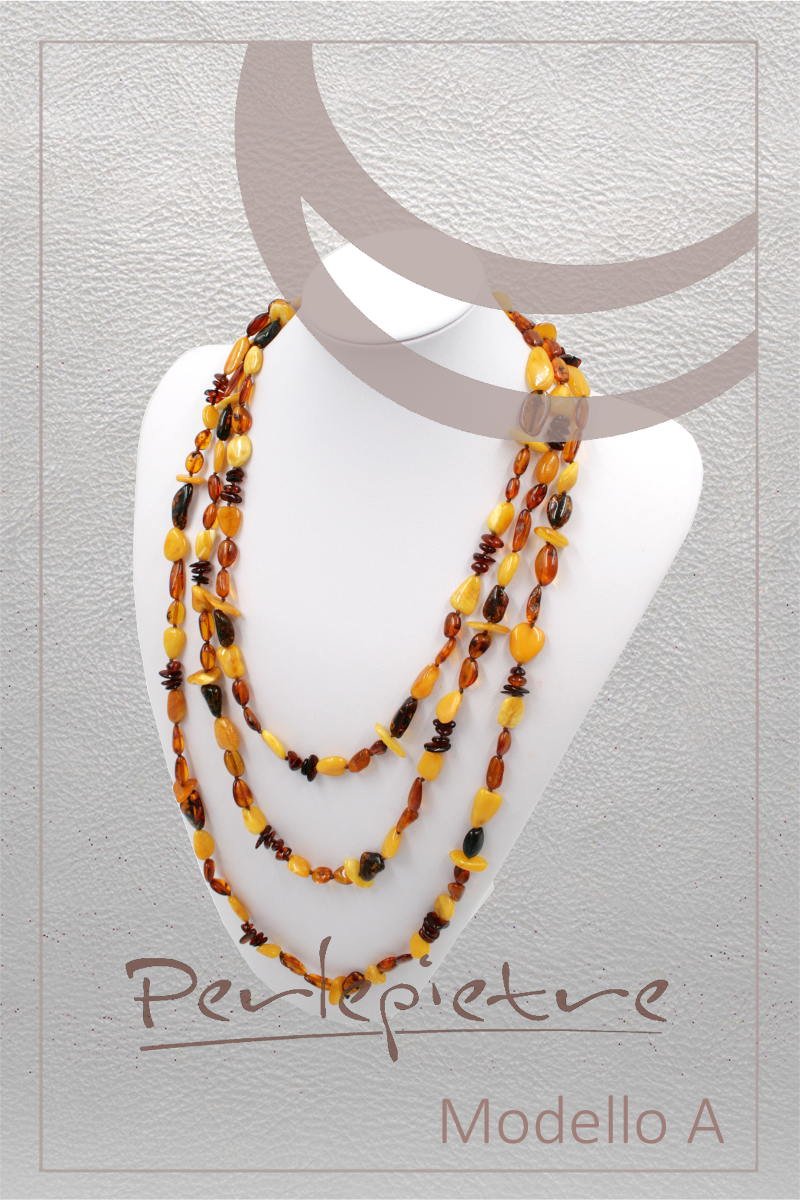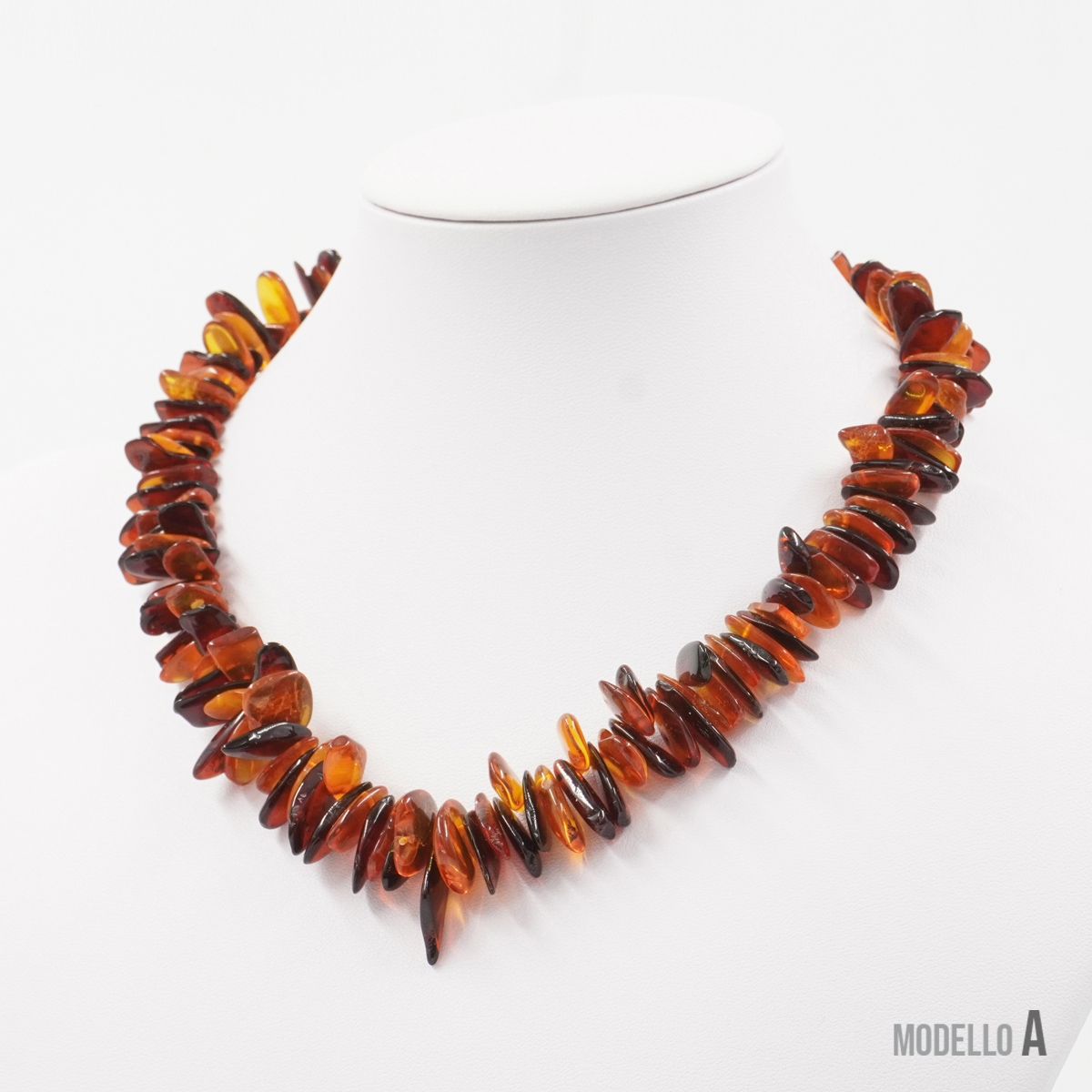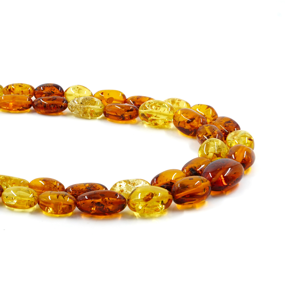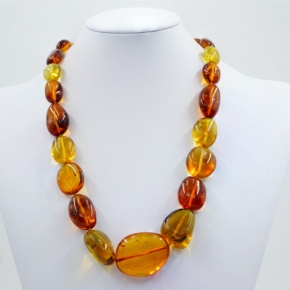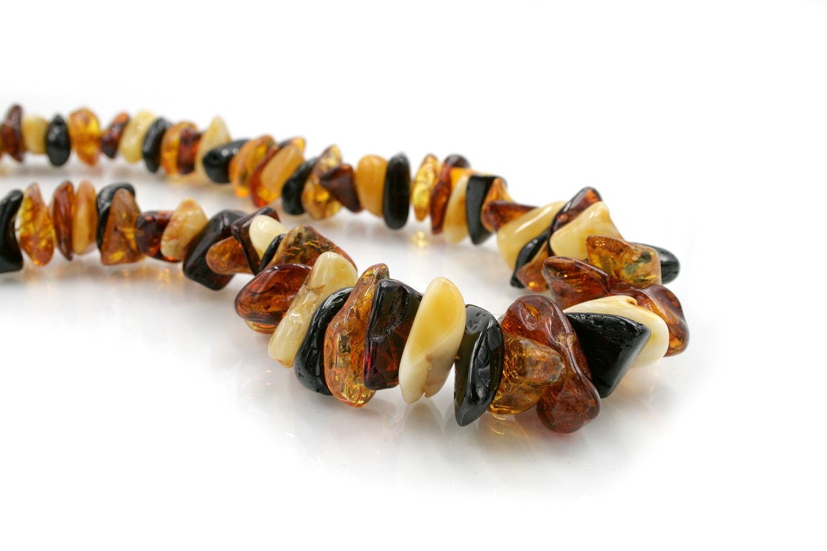 Multicolor Baltic Amber Necklace flat tumbles shape