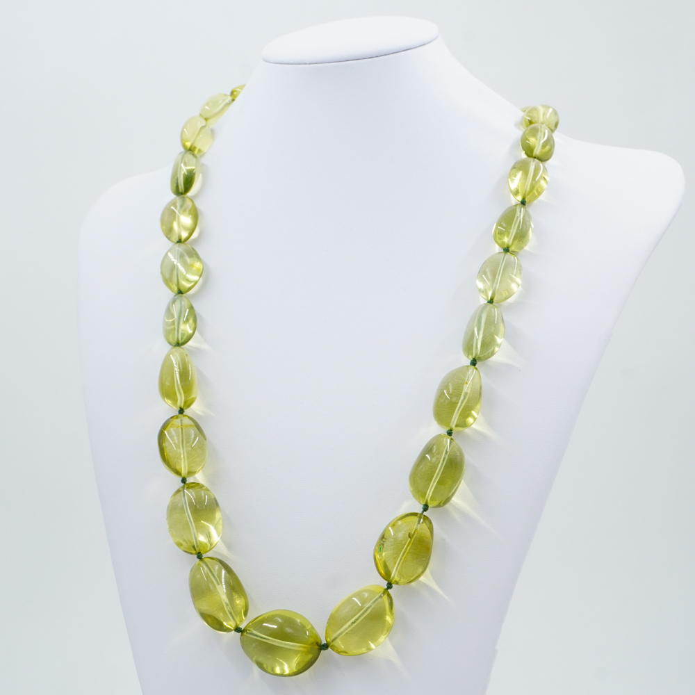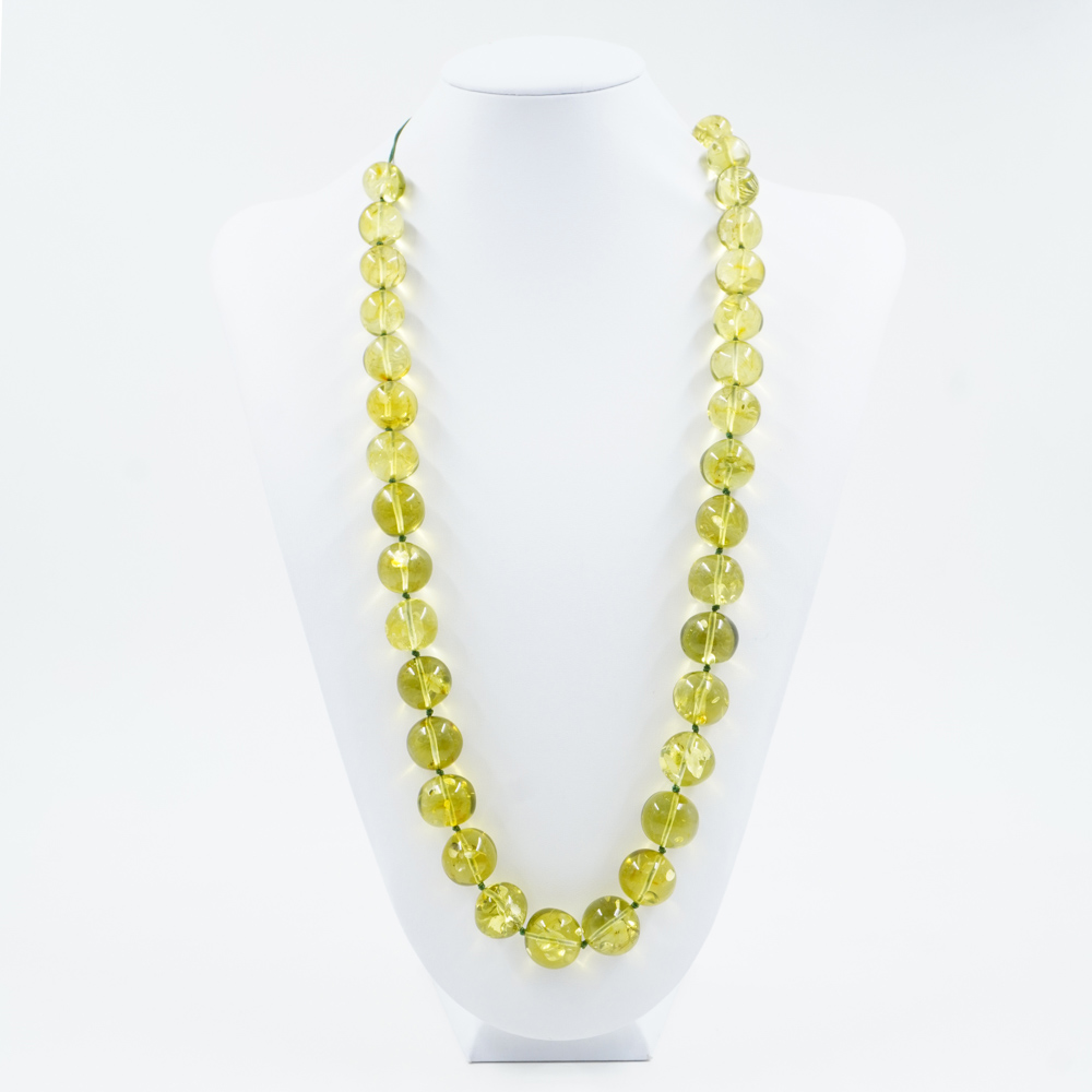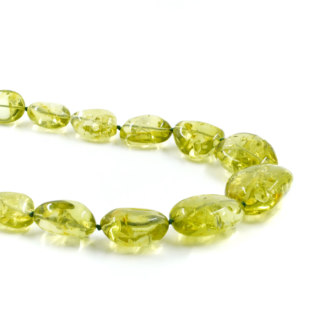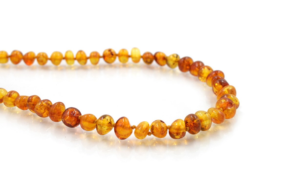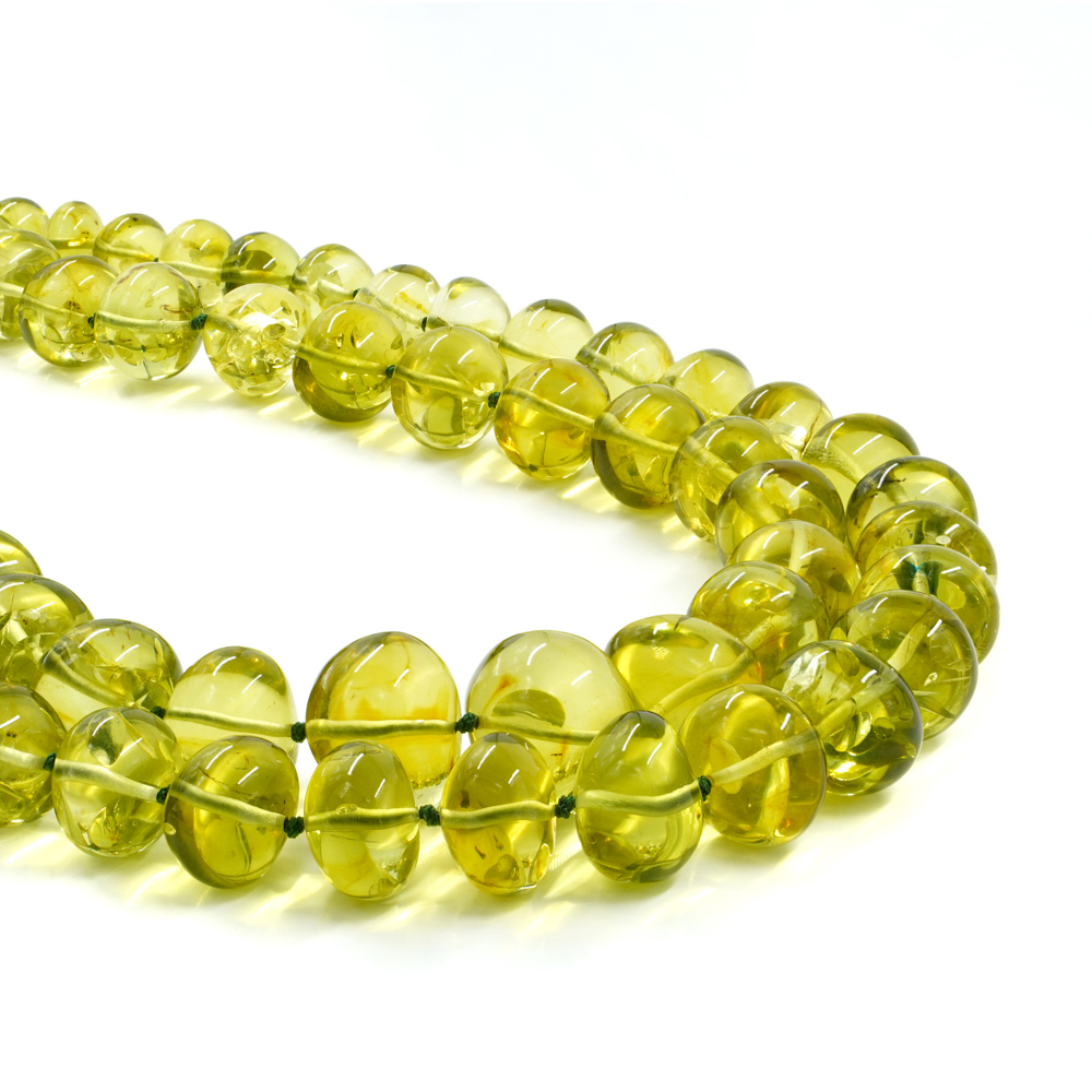 Yellow Baltic Amber Necklace flat oval and round tumbles shape
