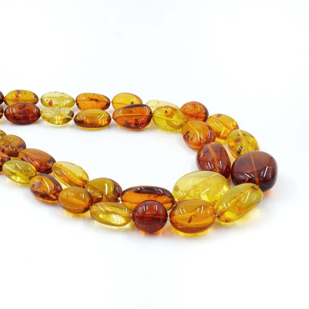 Multicolor Baltic Amber Necklace flat oval tumbles shape