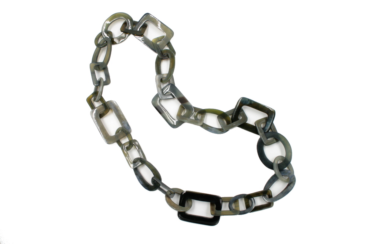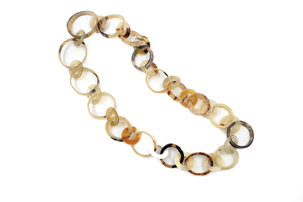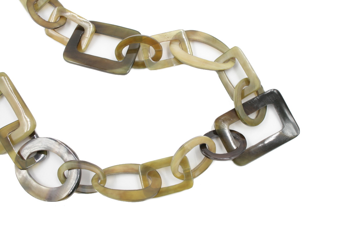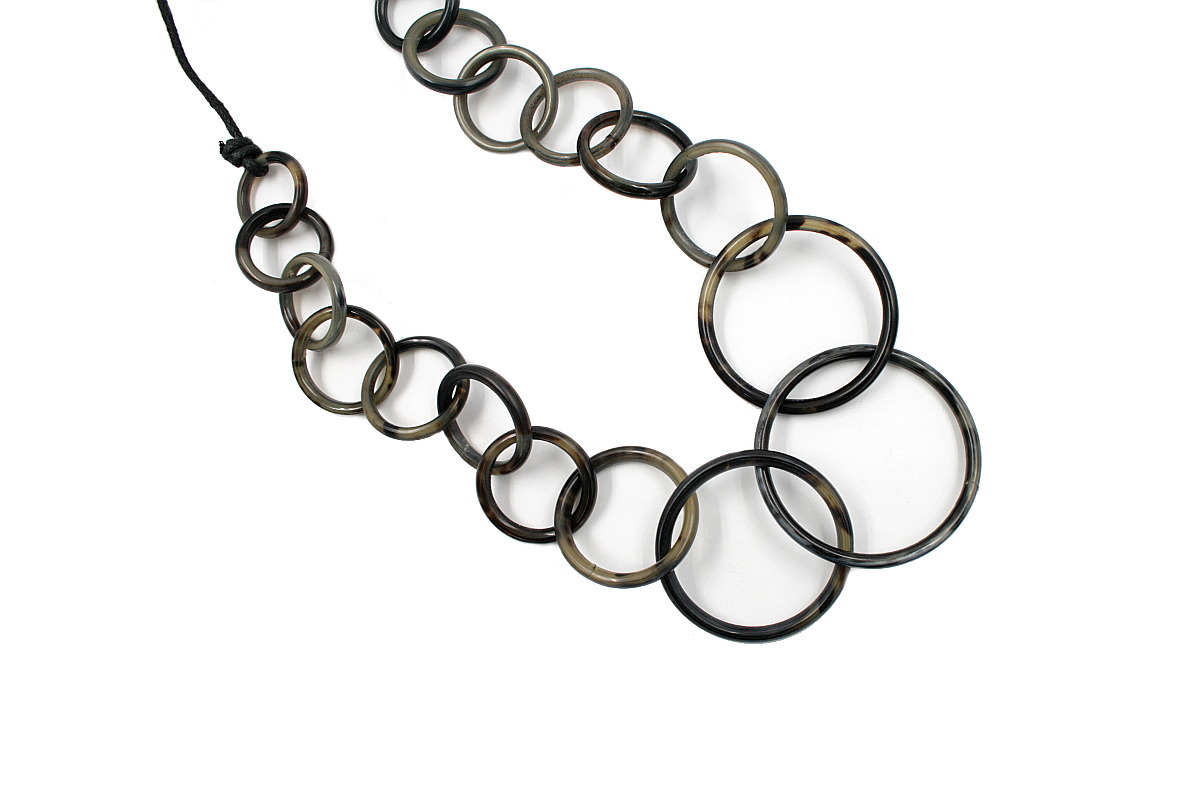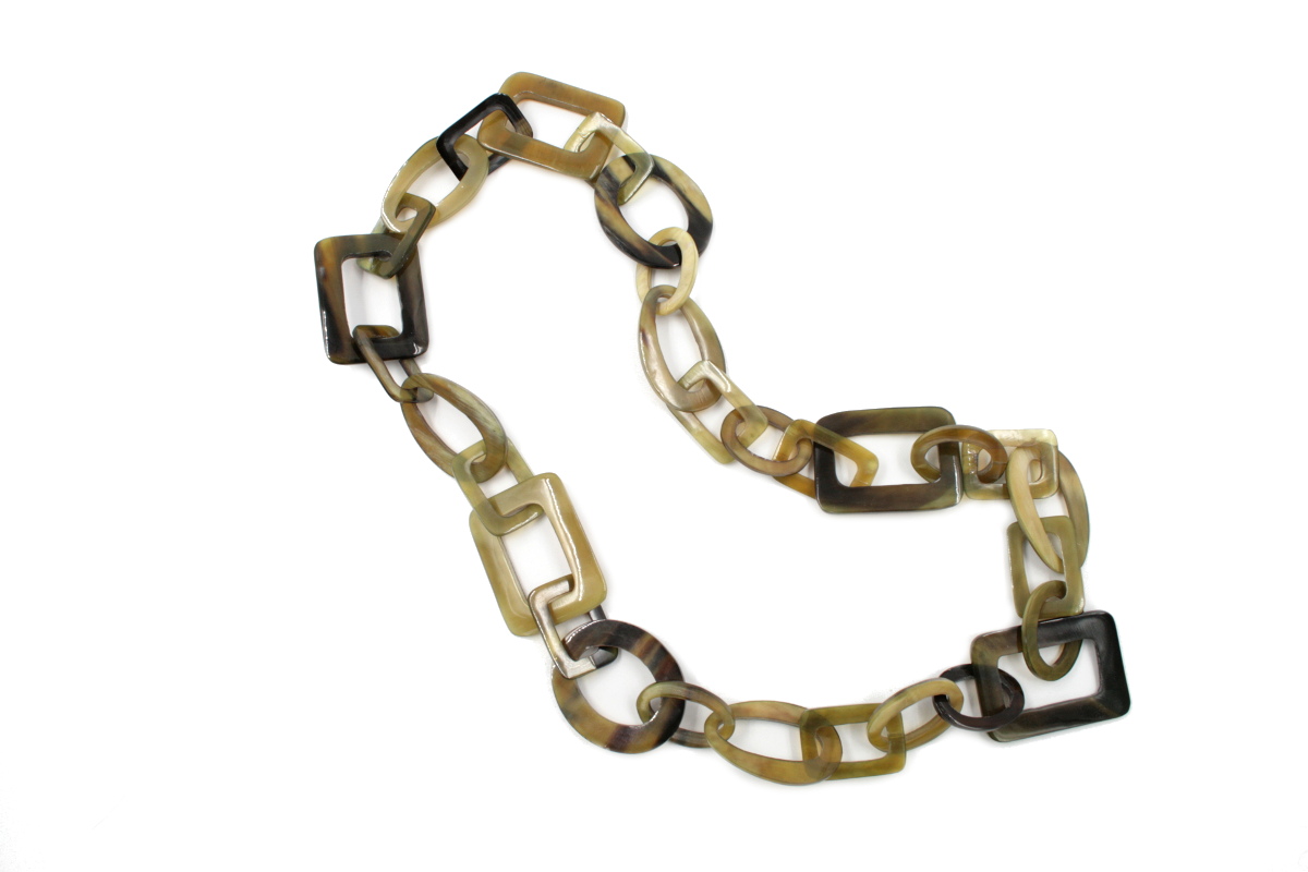 Horn Necklace with beige and black oval, triangular and rectangular elements