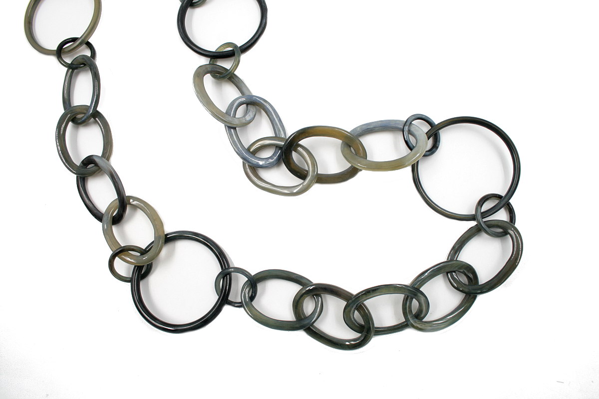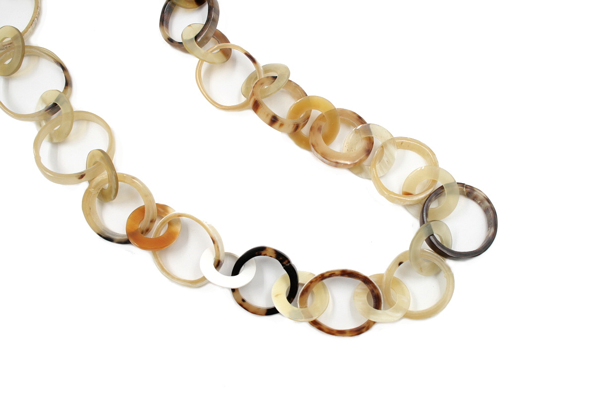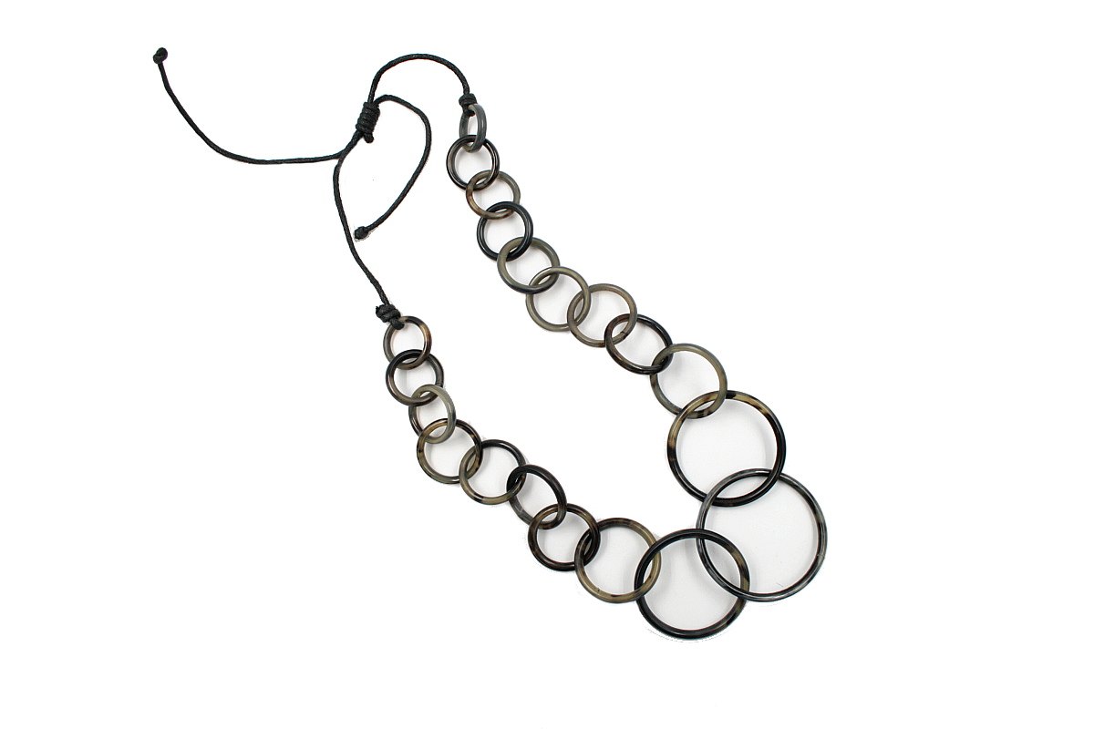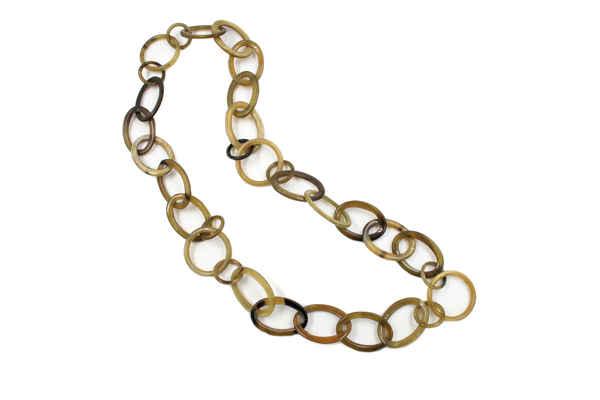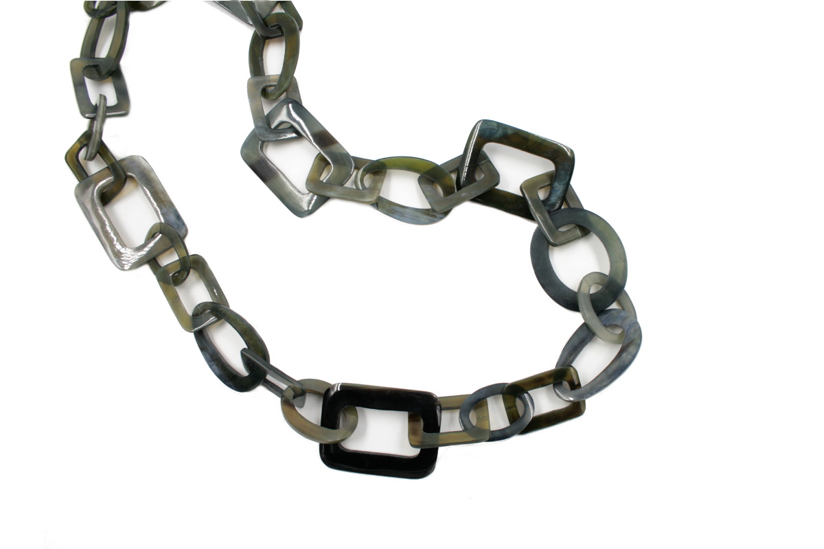 Horn Necklace with beige and black oval, triangular and rectangular elements