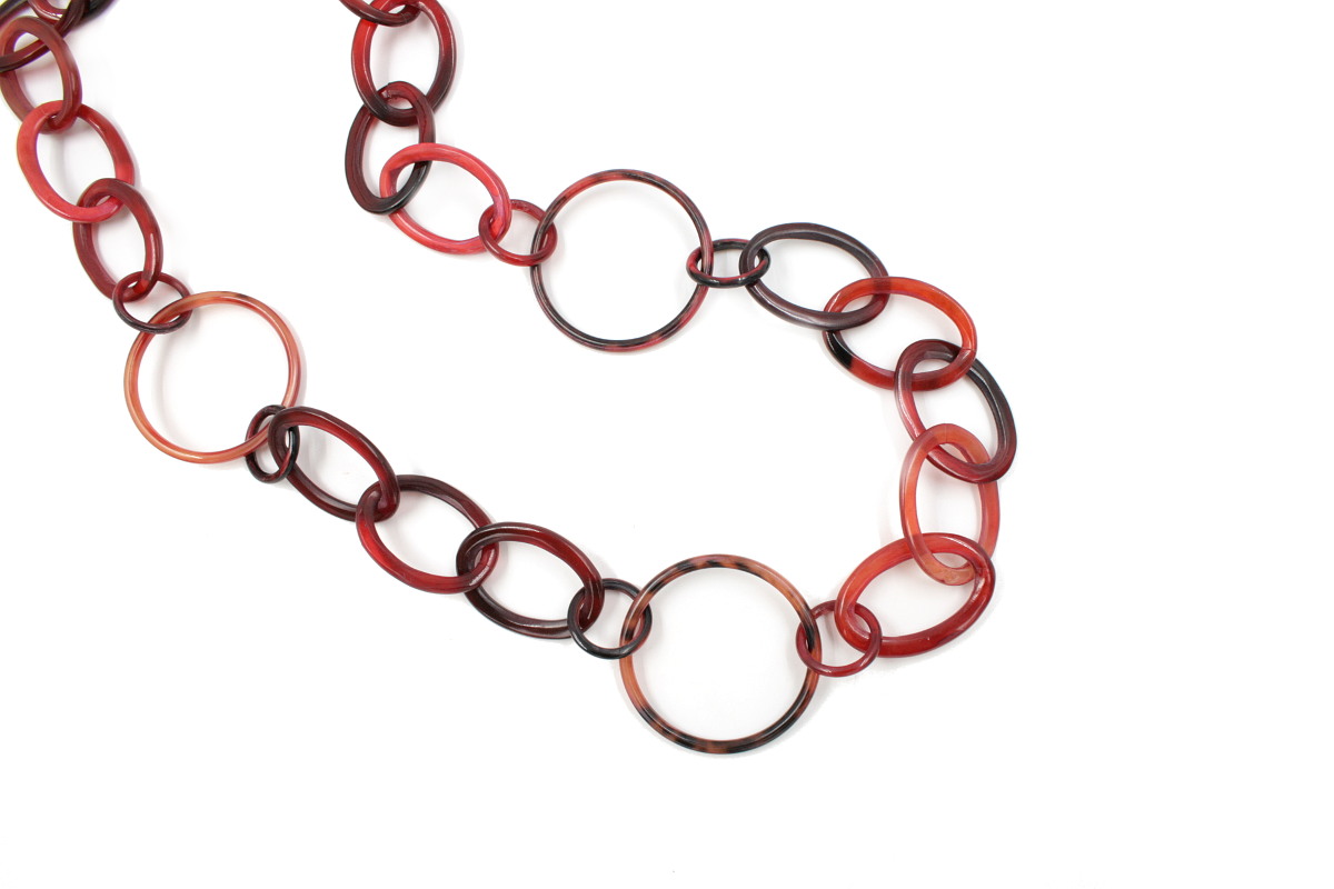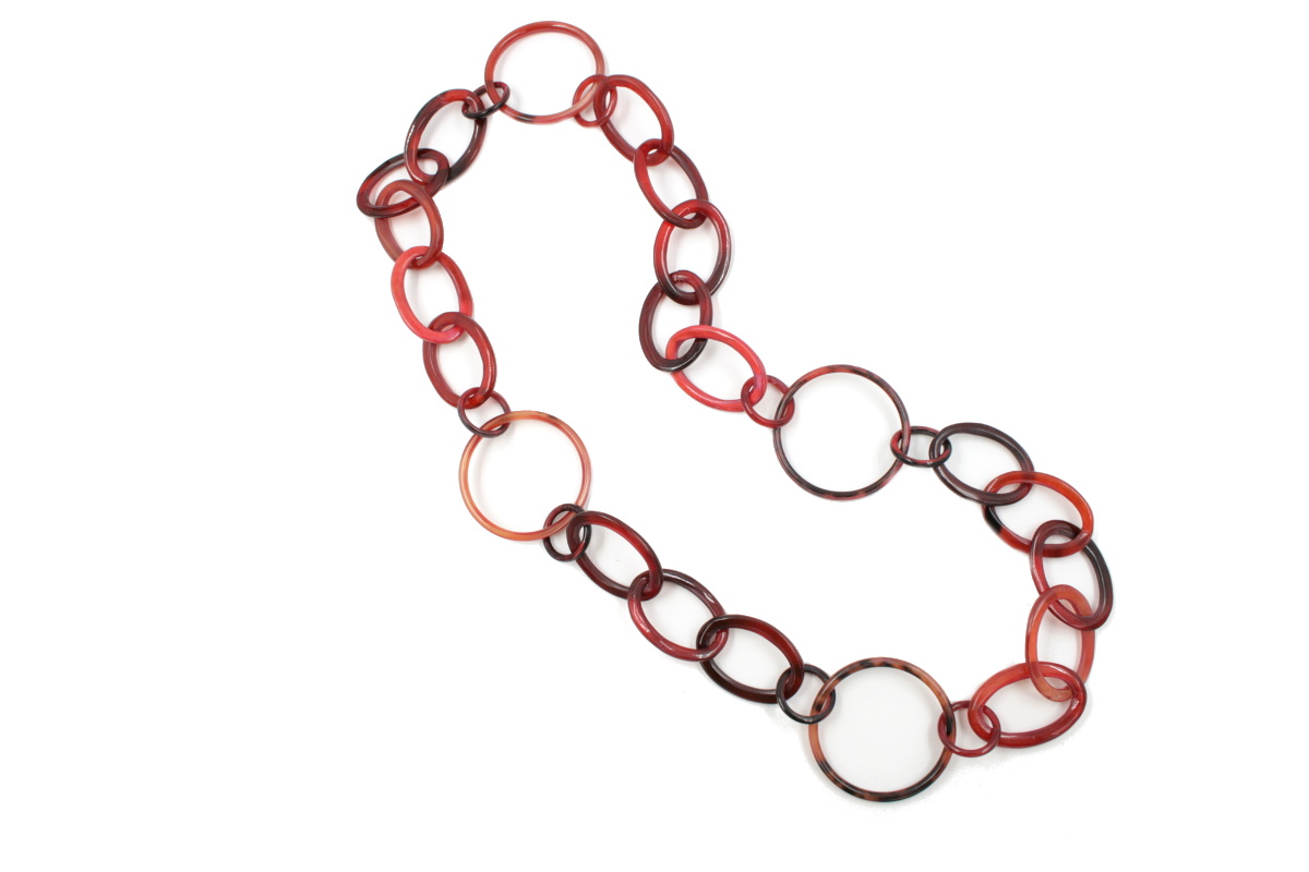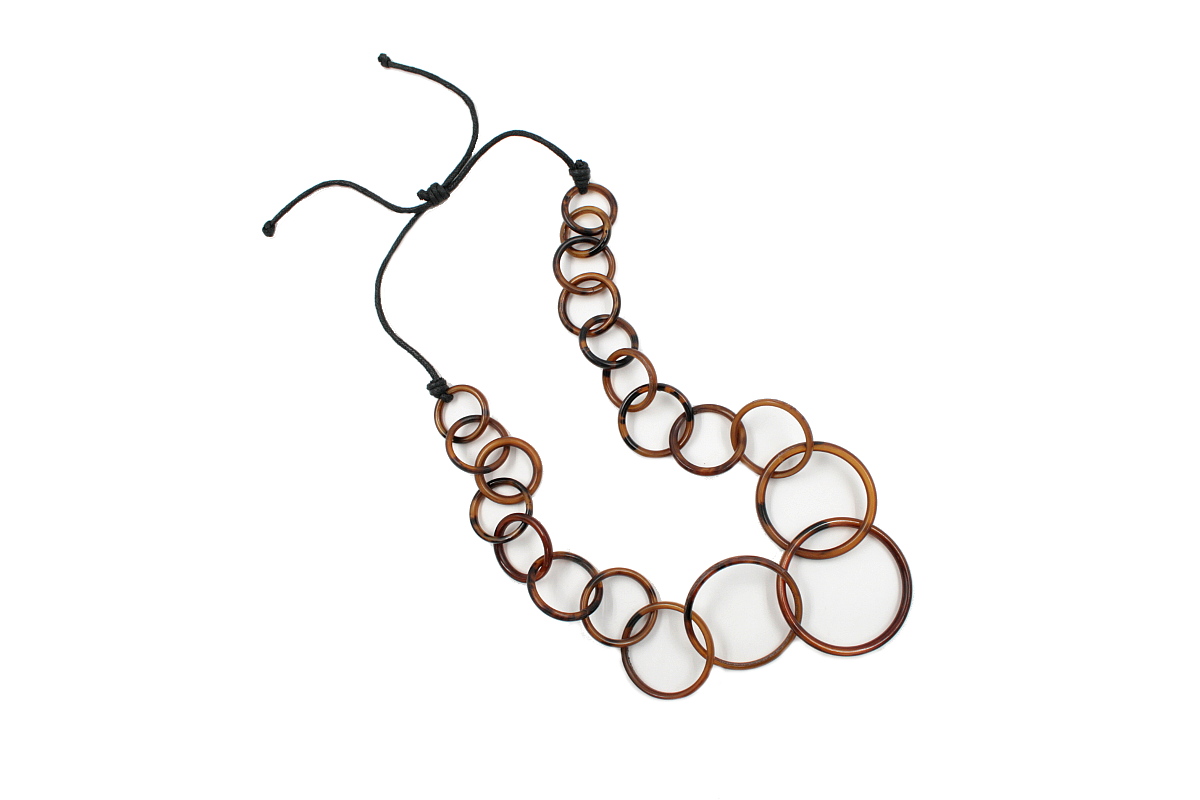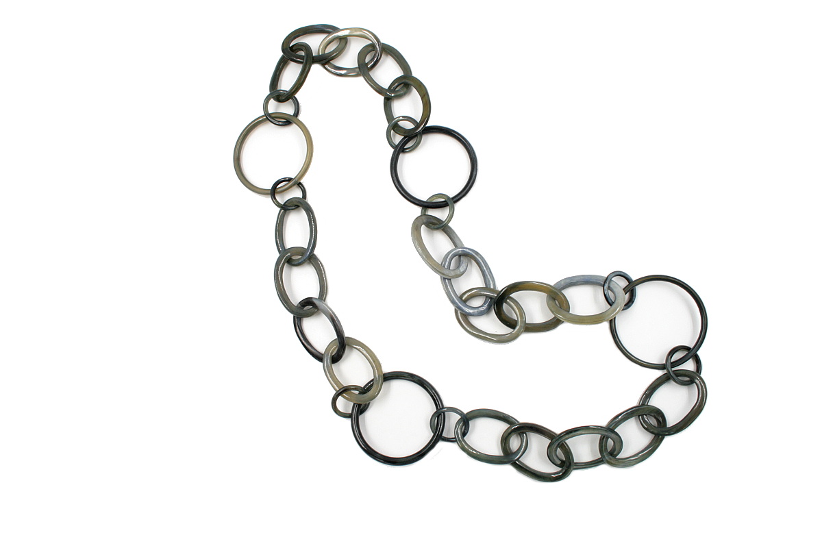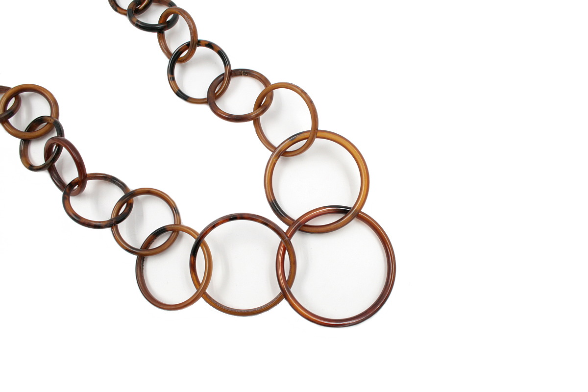 Horn Necklace with beige and black oval, triangular and rectangular elements