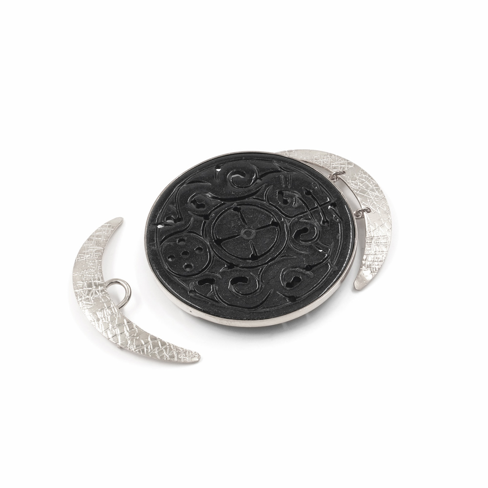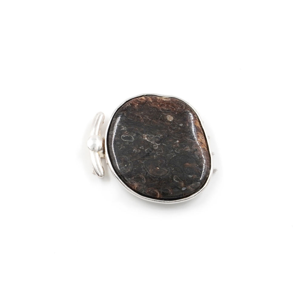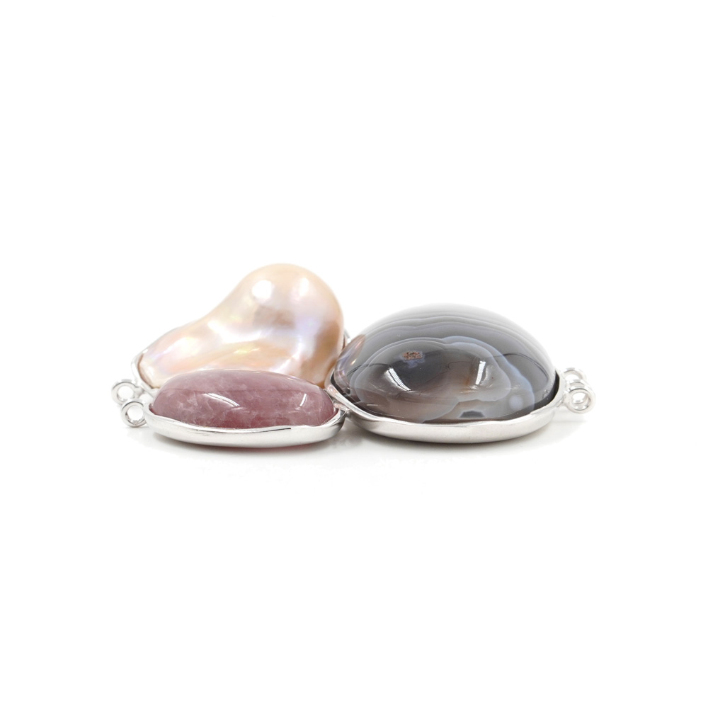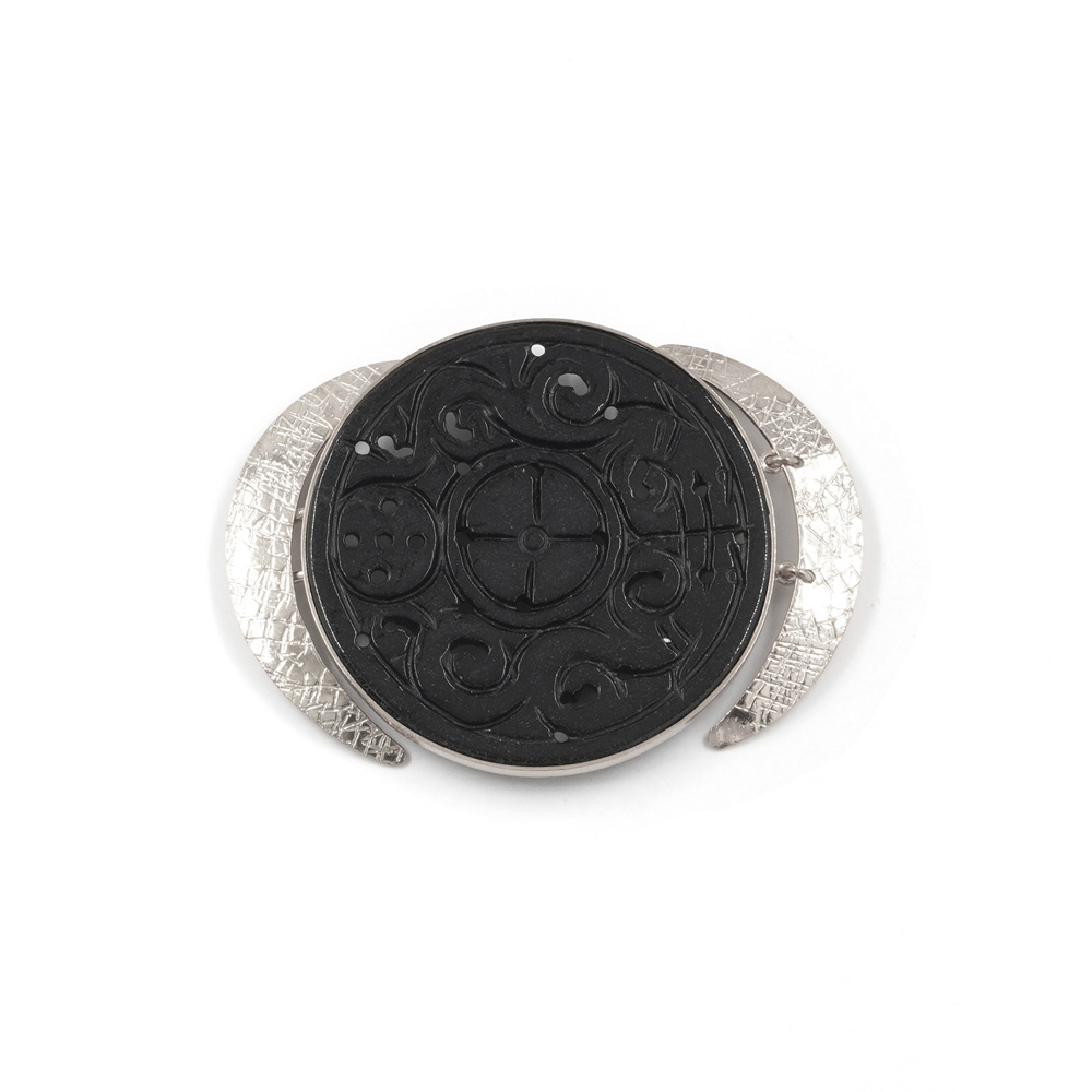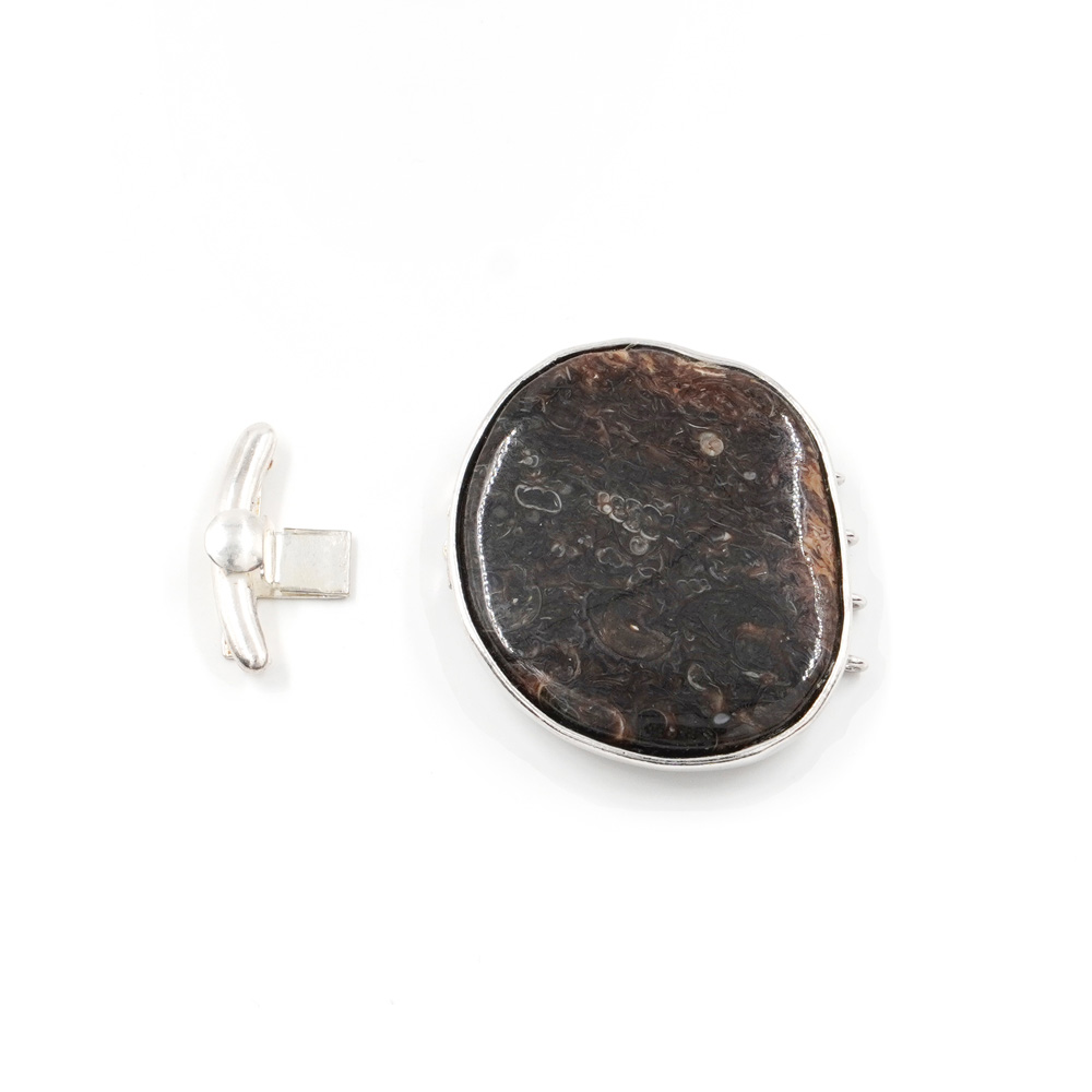 Sterling Silver clasp with black agate engraved plate – Rhodium Color or Rose Color