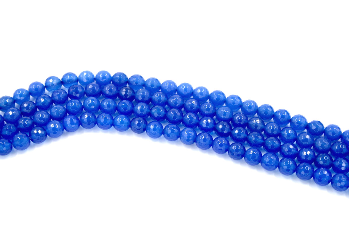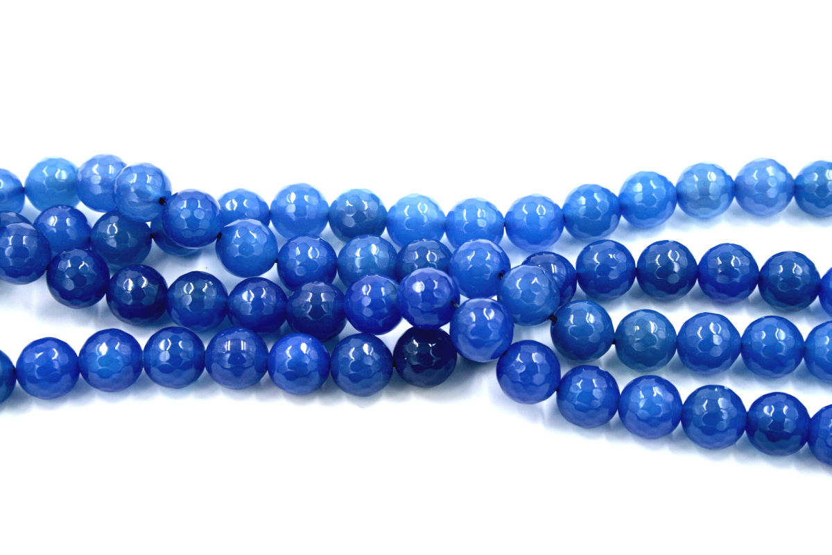 Blue Agate strands faceted round shape size 12mm – Dark Color