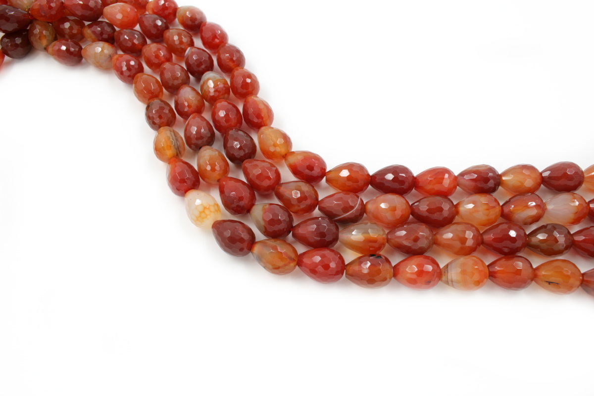 Red Agate strands faceted drop shape size 22x16mm – Passing Hole
