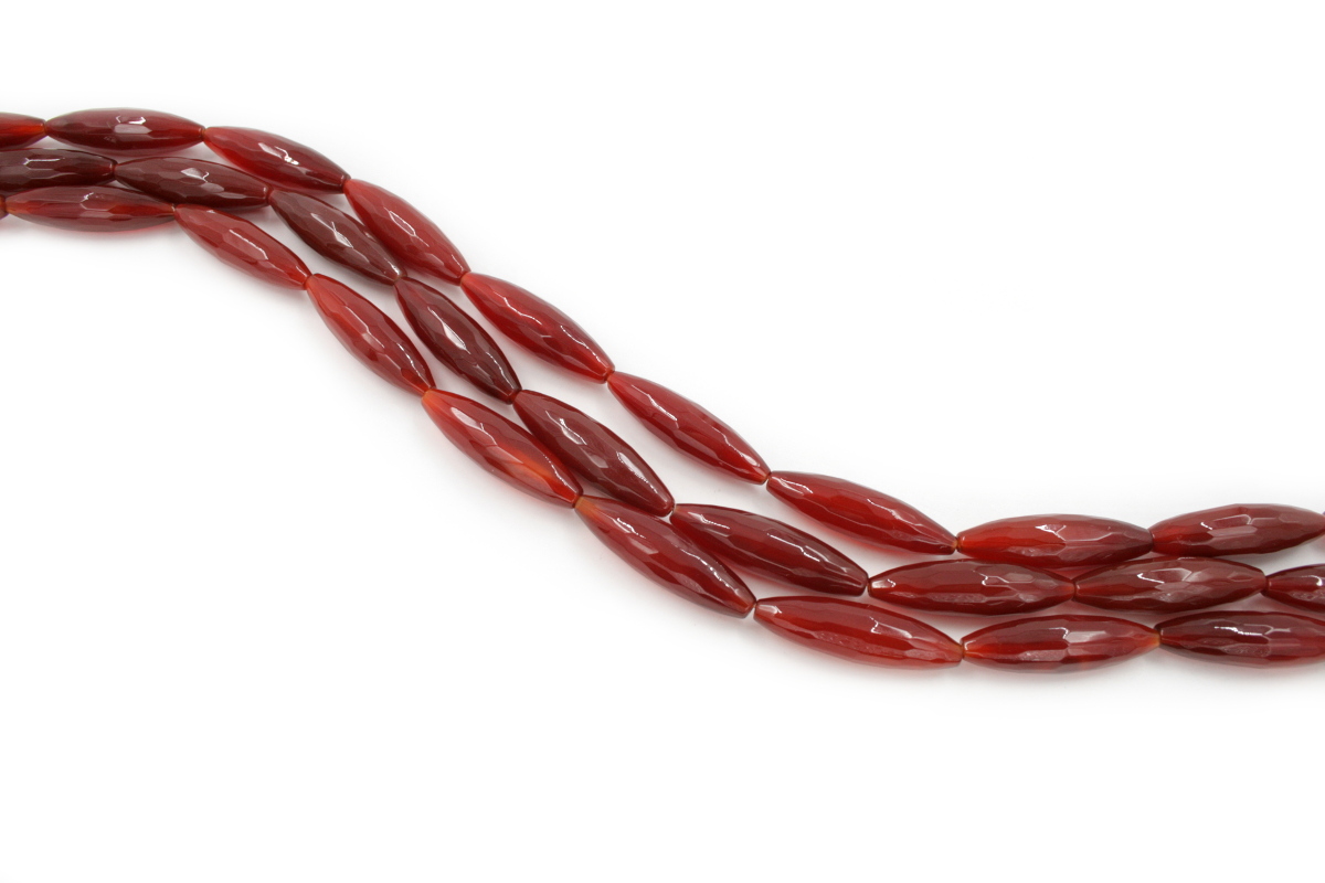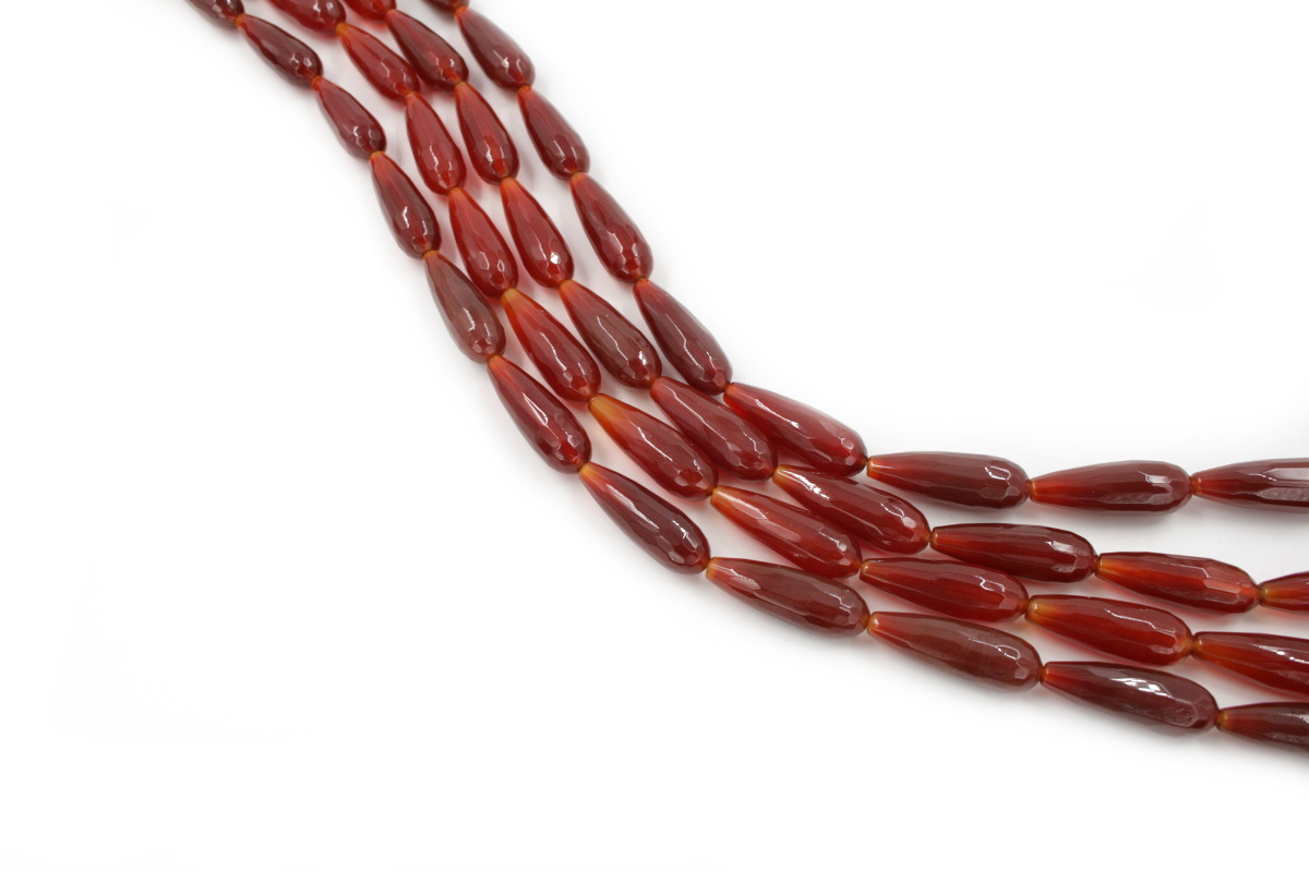 Red Agate strands faceted drop shape size 30x10mm – Passing Hole