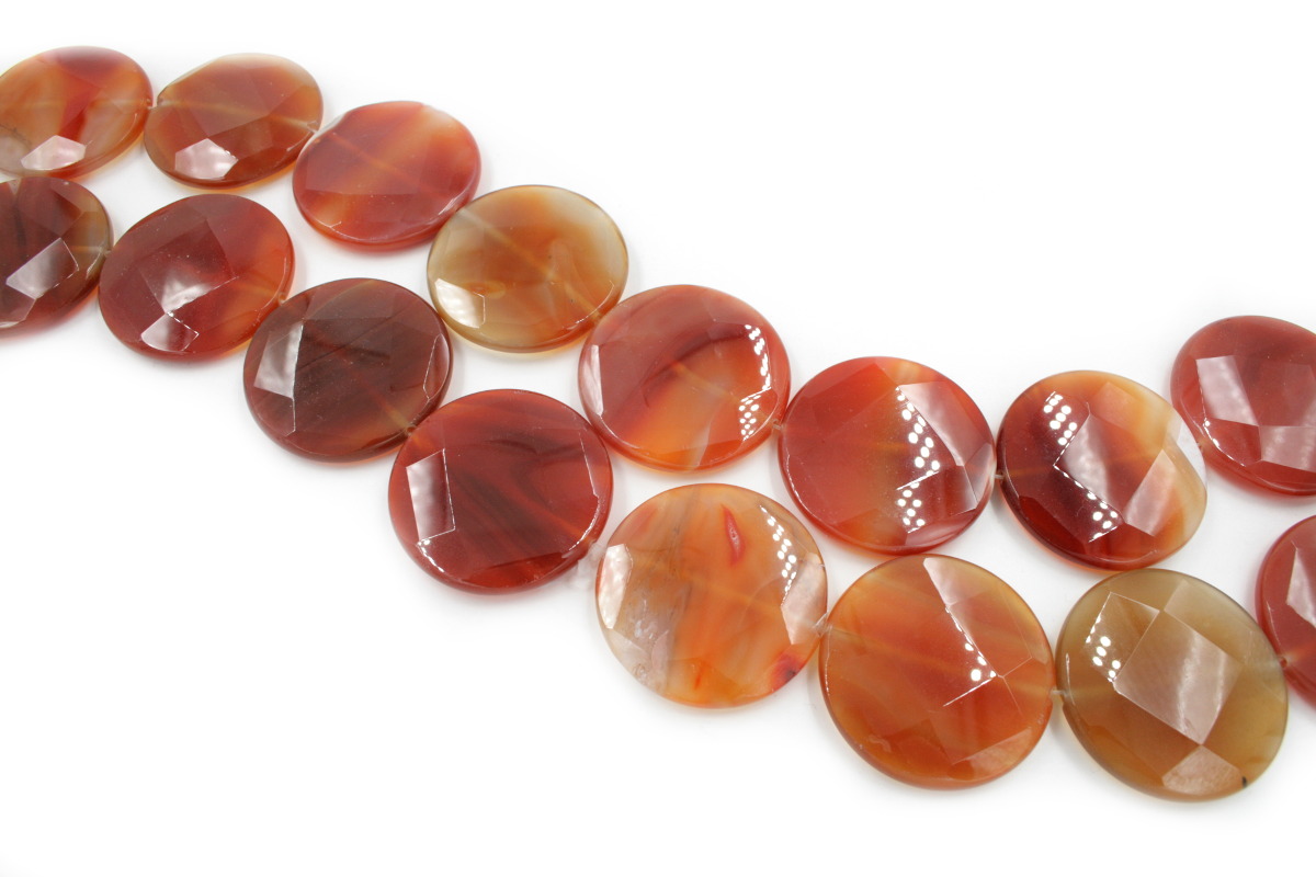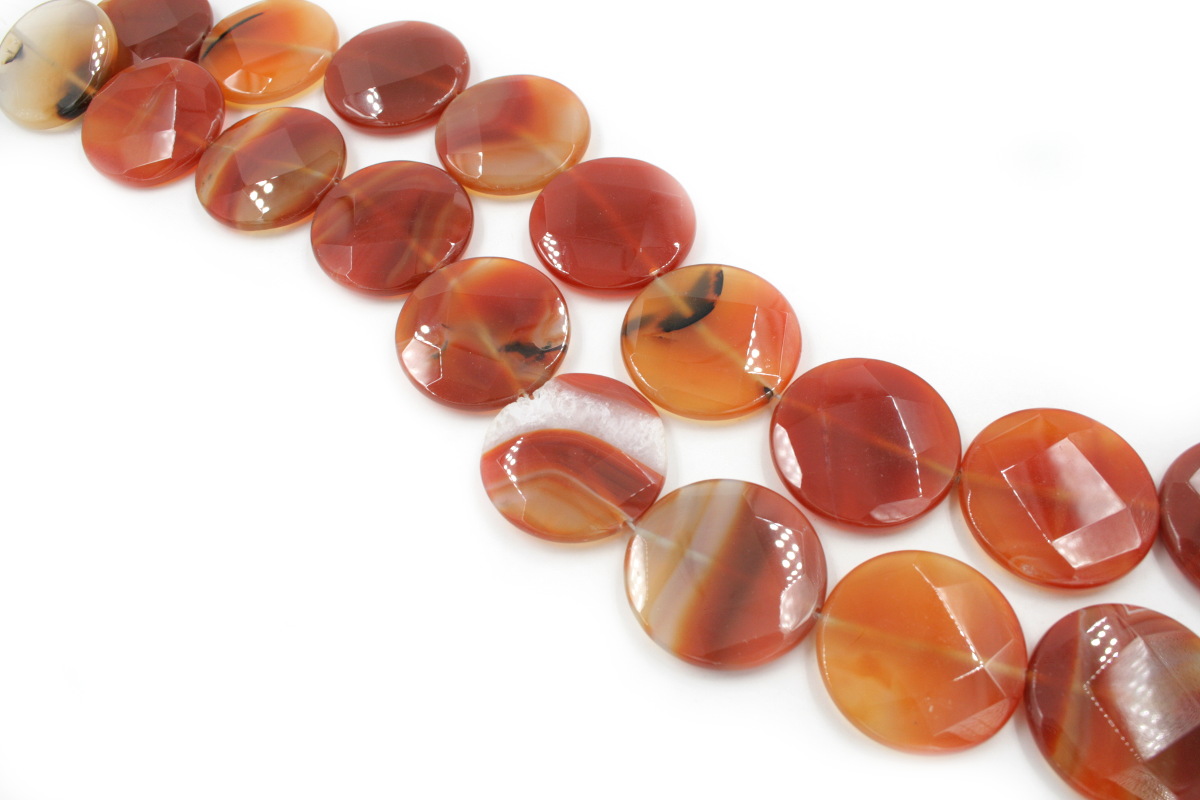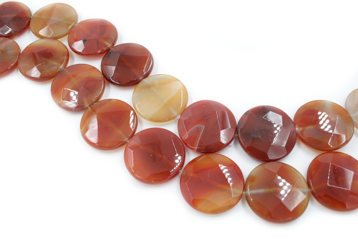 Red Agate strands faceted coin shape size 25mm – Multicolor