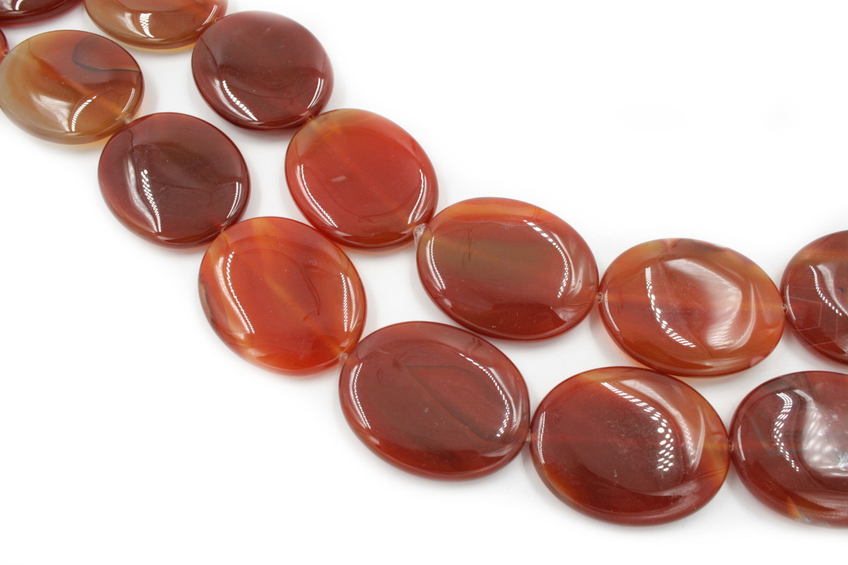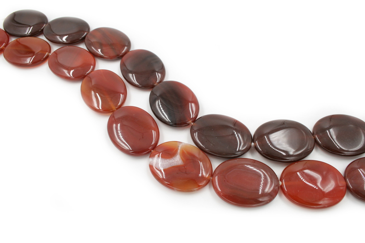 Red Agate strands flat oval shape size 35x25mm – Multicolor