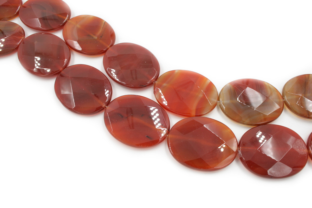 Red Agate strands faceted flat oval shape size 40x30mm – Multicolor
