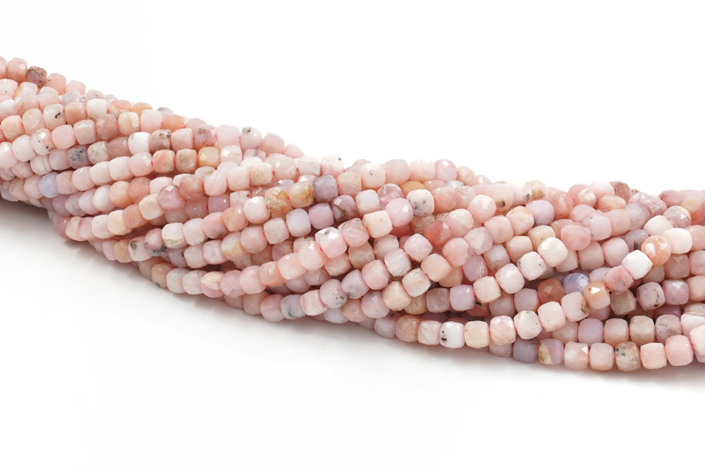 Pink Opal strands faceted dice shape size 2,5mm