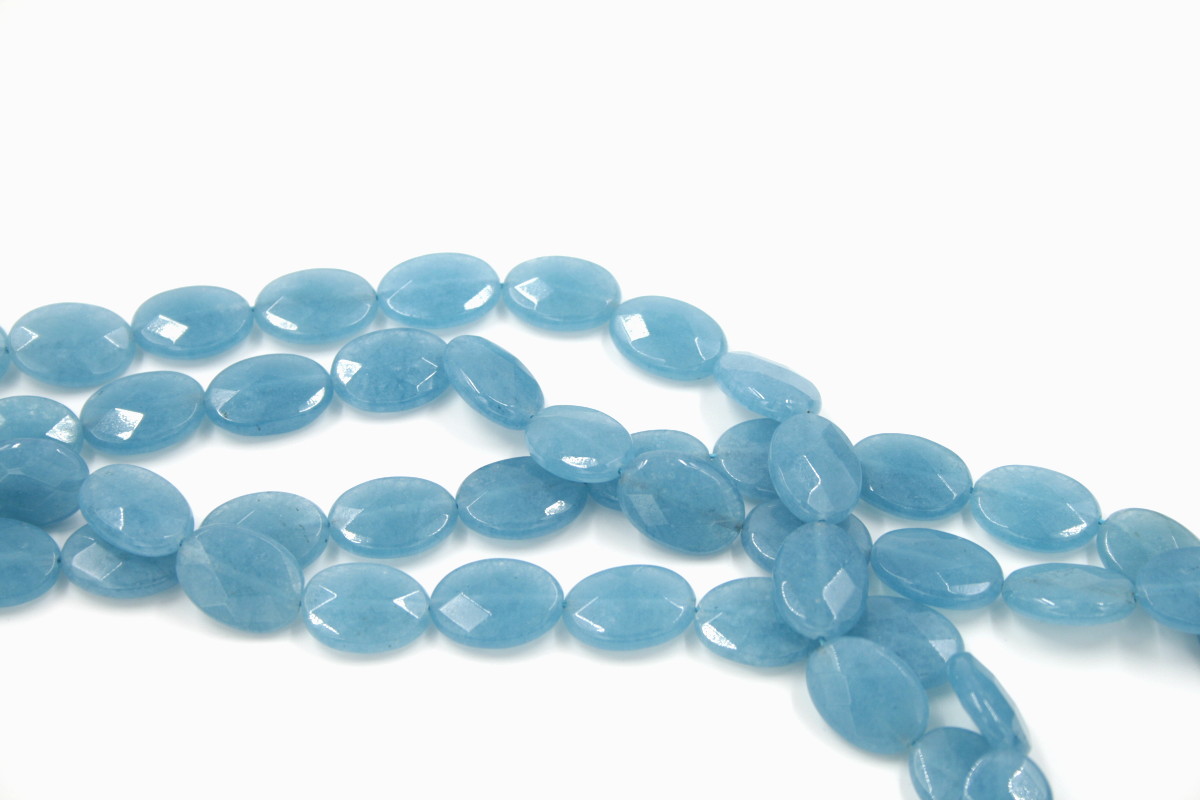 Blue spong quartz strands facetted flat oval shape size 18x13mm