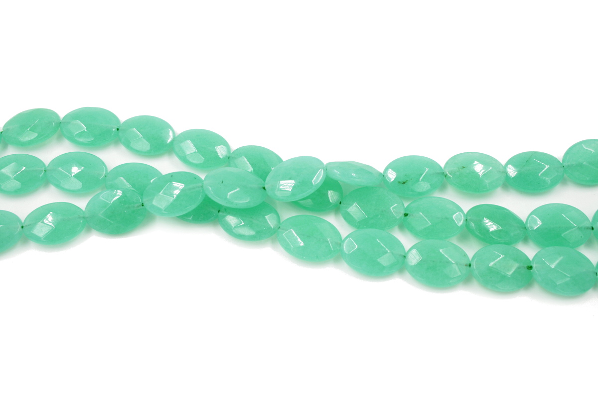 Green sponge quartz strands faceted flat oval shape size 18x13mm
