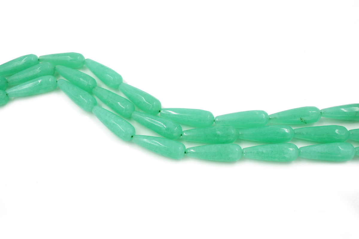 Green sponge quartz strands faceted drop shape size 30x10mm