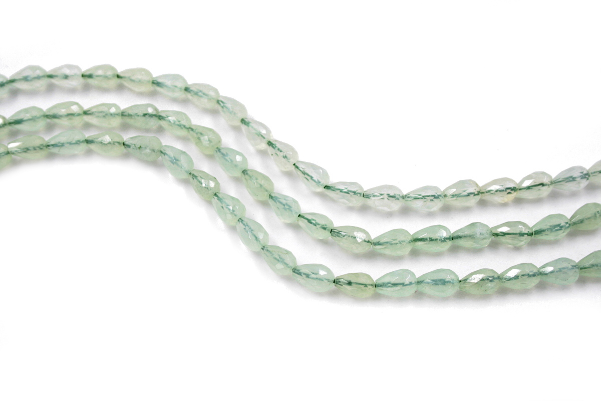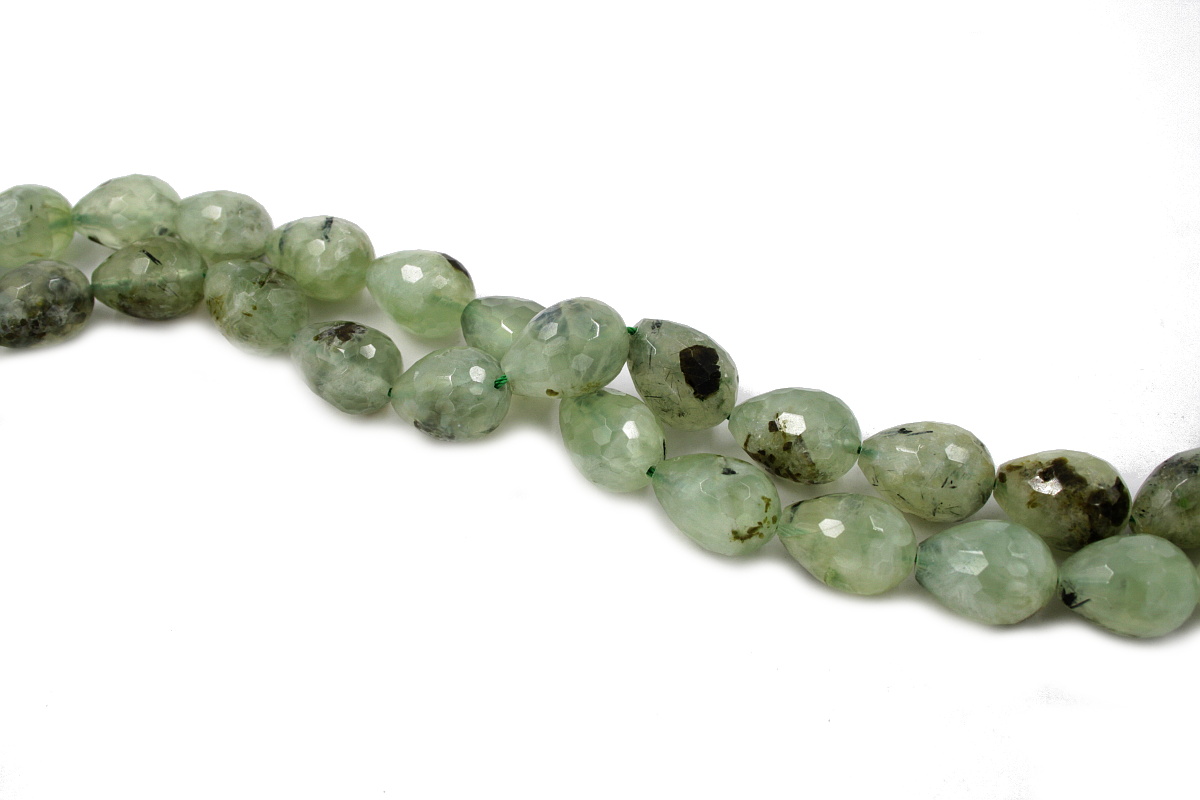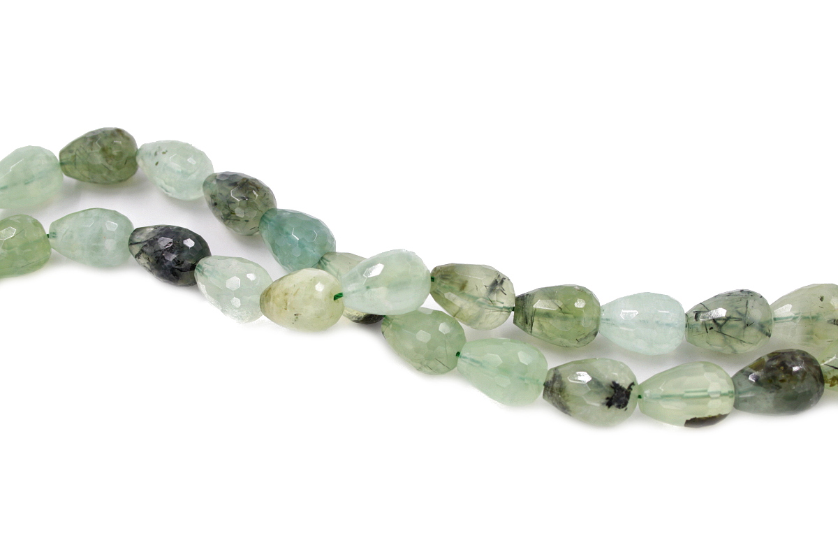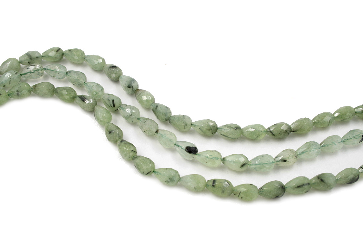 Green Tourmalinated Quartz strands faceted drop shape size 12x8mm