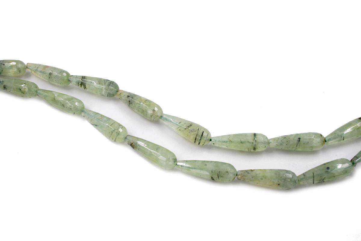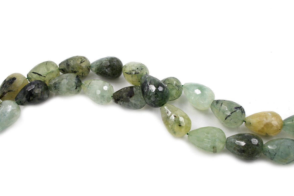 Green Tourmalinated Quartz strands faceted drop shape size 22x16mm