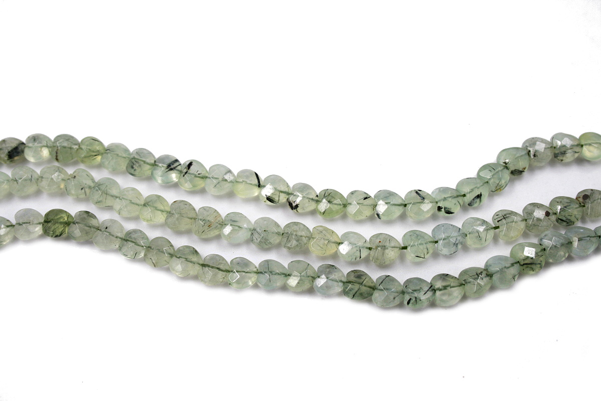 Green Tourmalinated Quartz strands faceted heart shape size 8mm