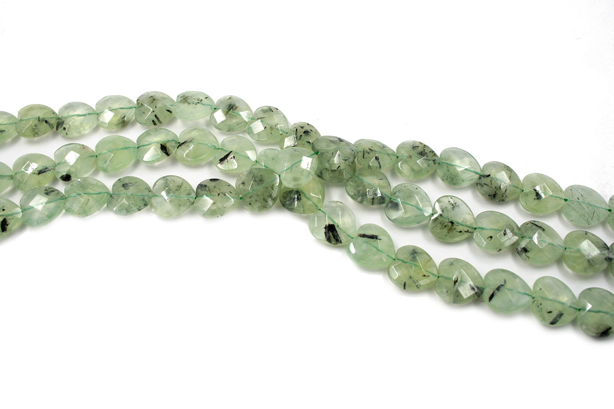 Green Tourmalinated Quartz strands flat oval shape size 18x13mm