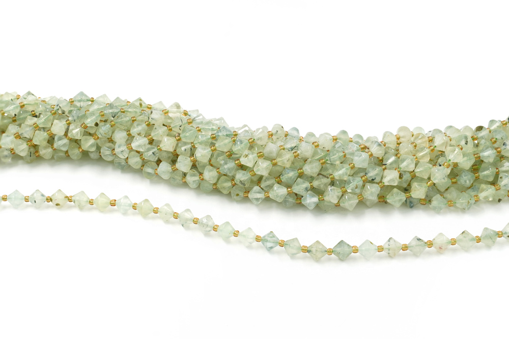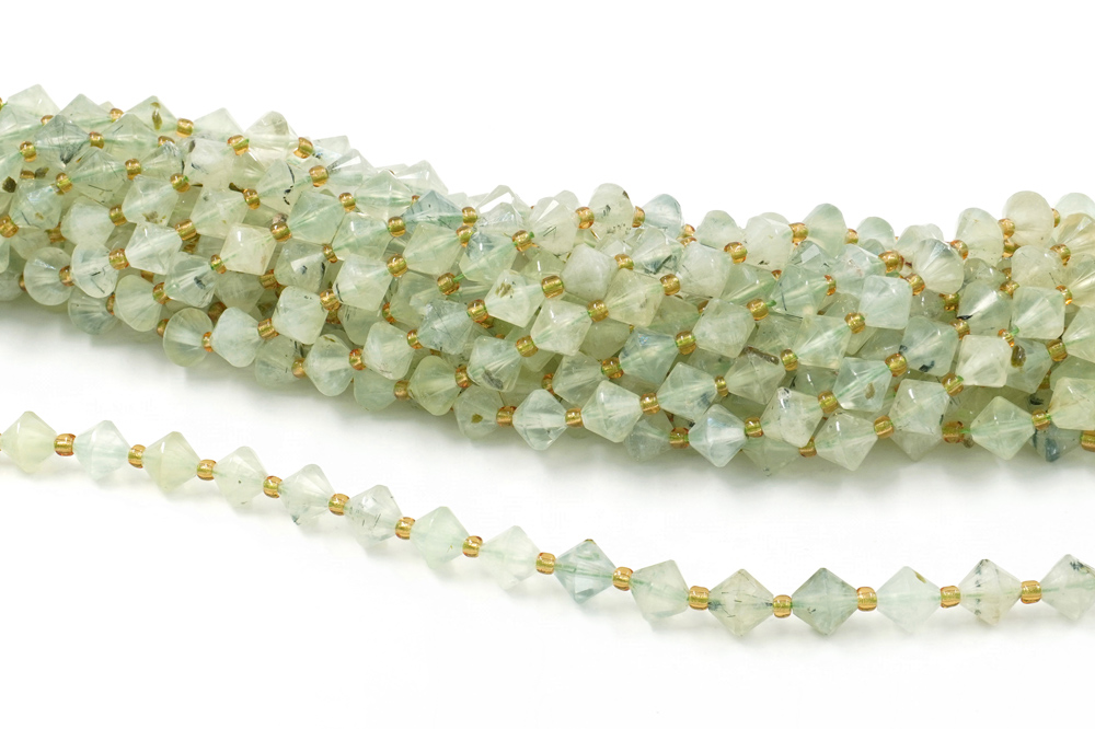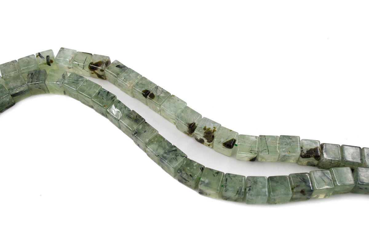 Green Tourmalinated Quartz strands dice shape size 7mm