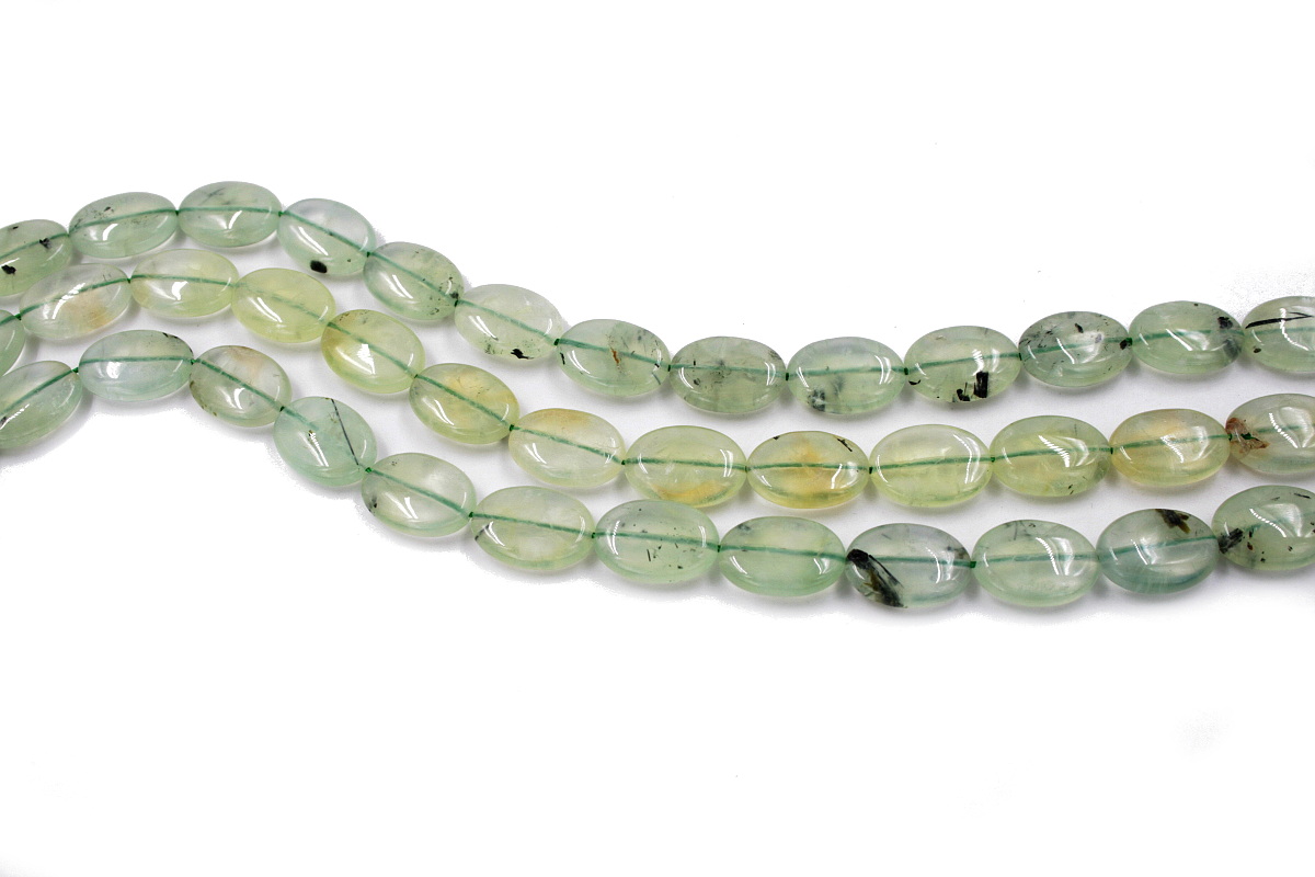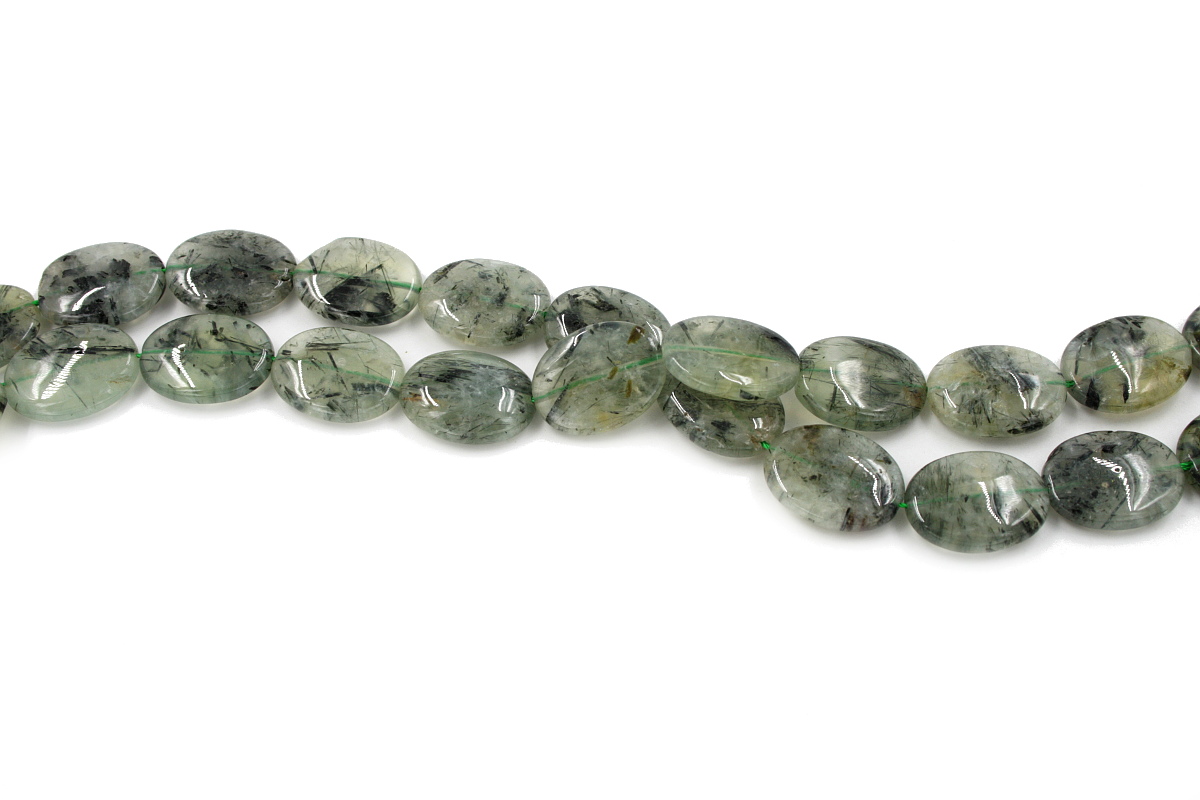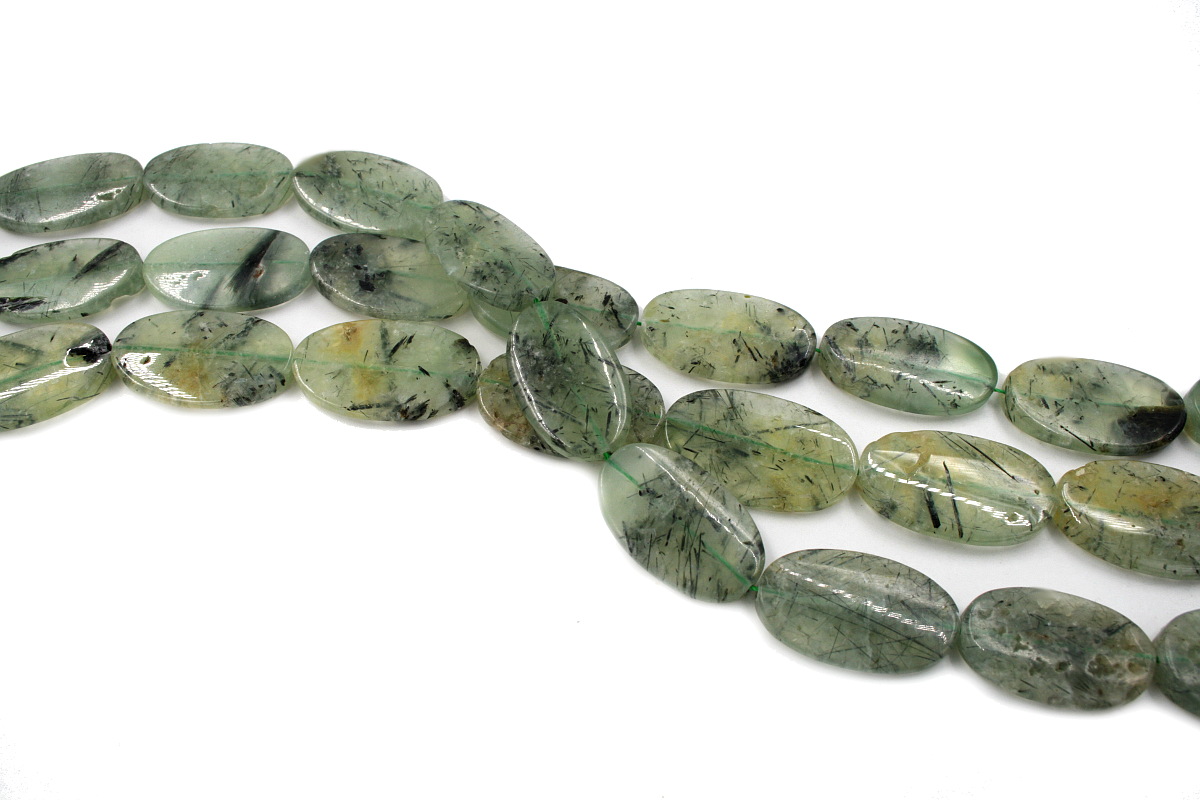 Green Tourmalinated Quartz strands flat oval shape size 20x15mm