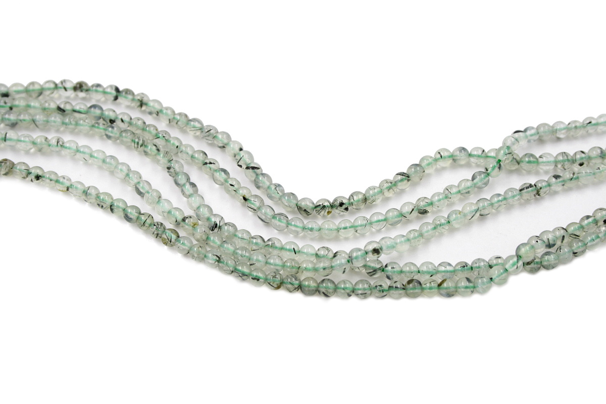 Green Tourmalinated Quartz strands round shape size 6mm to 10mm