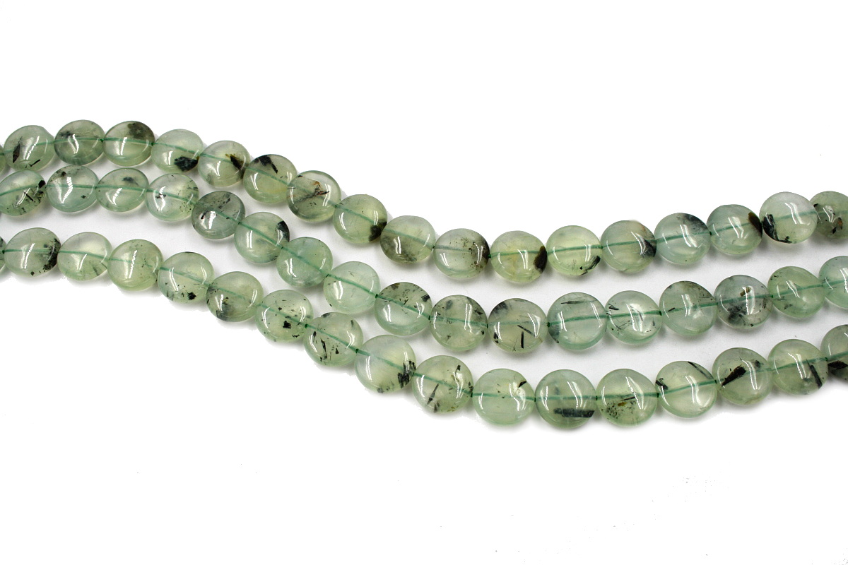 Green Tourmalinated Quartz strands coin shape size 10mm