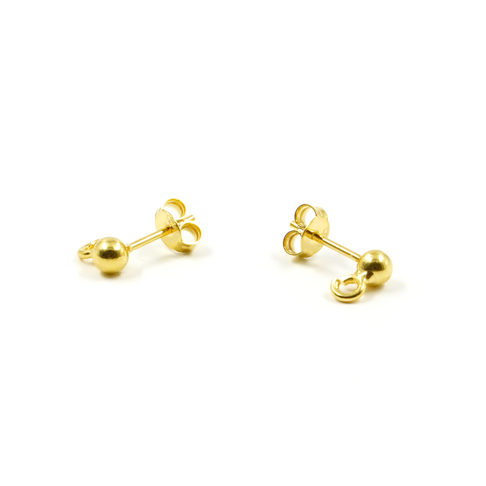 Sterling Silver pressure earrings sphere size 4mm with hook – Golden Color