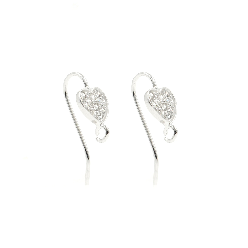 Sterling silver earrings heart shape with zircons – Rhodium Color