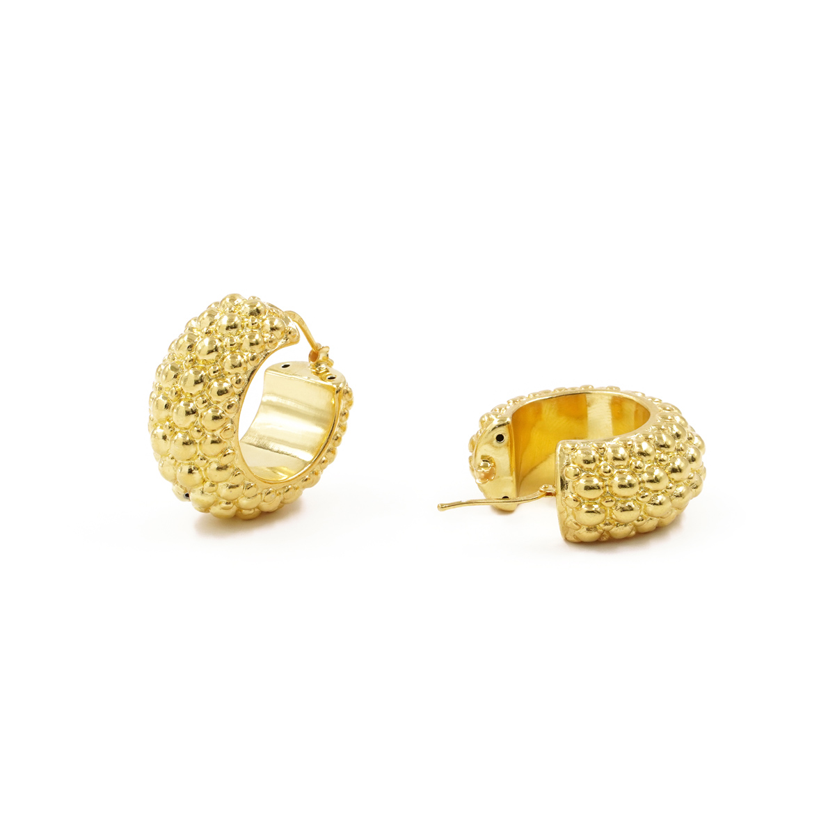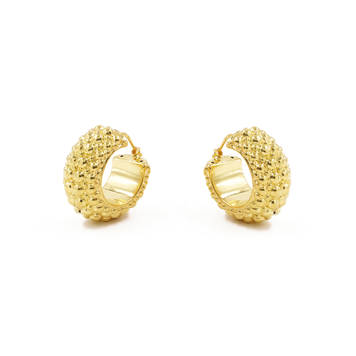 Sterling Silver earrings granulated round shape size 15mm – Silver Color