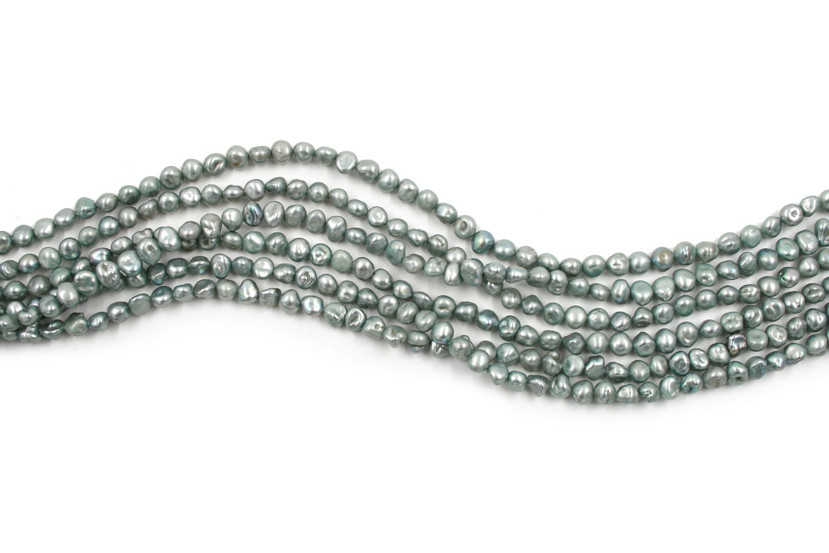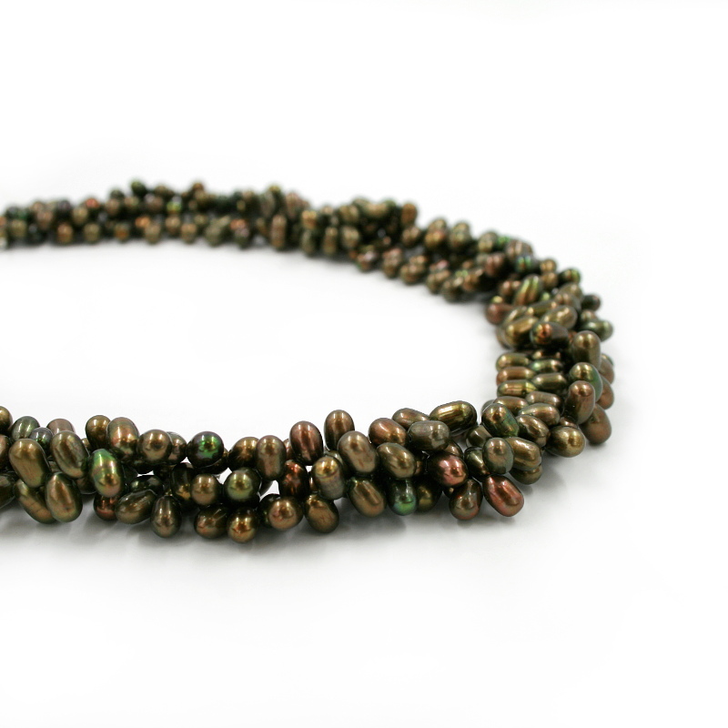 Perle d’Acqua Dolce fili riso 5mm – Foro a lato – Verde